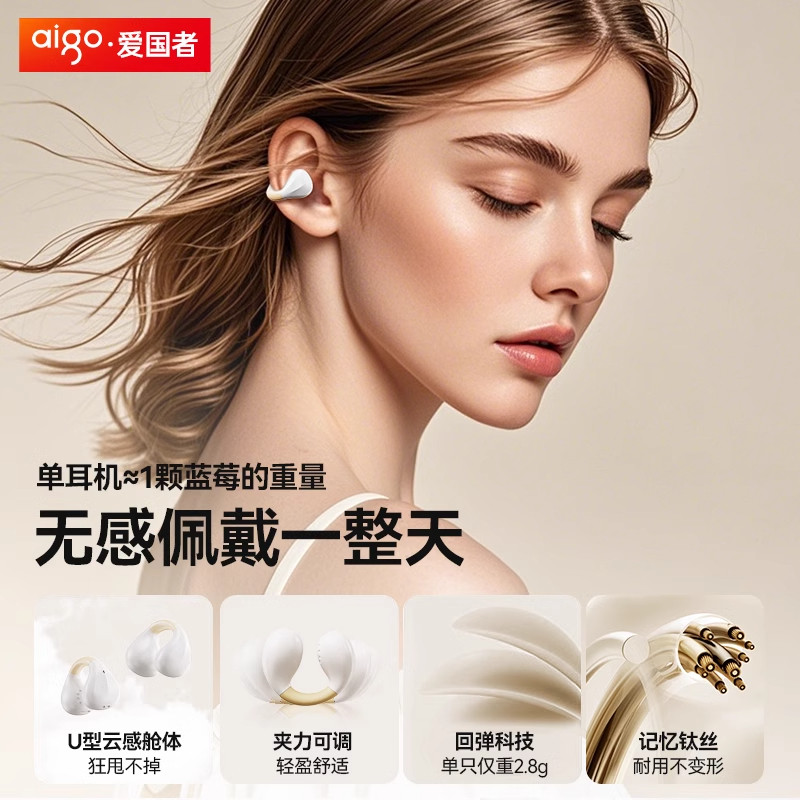 爱国者骨传导蓝牙耳机耳夹式2026新款超长续航不入耳无线运动跑步