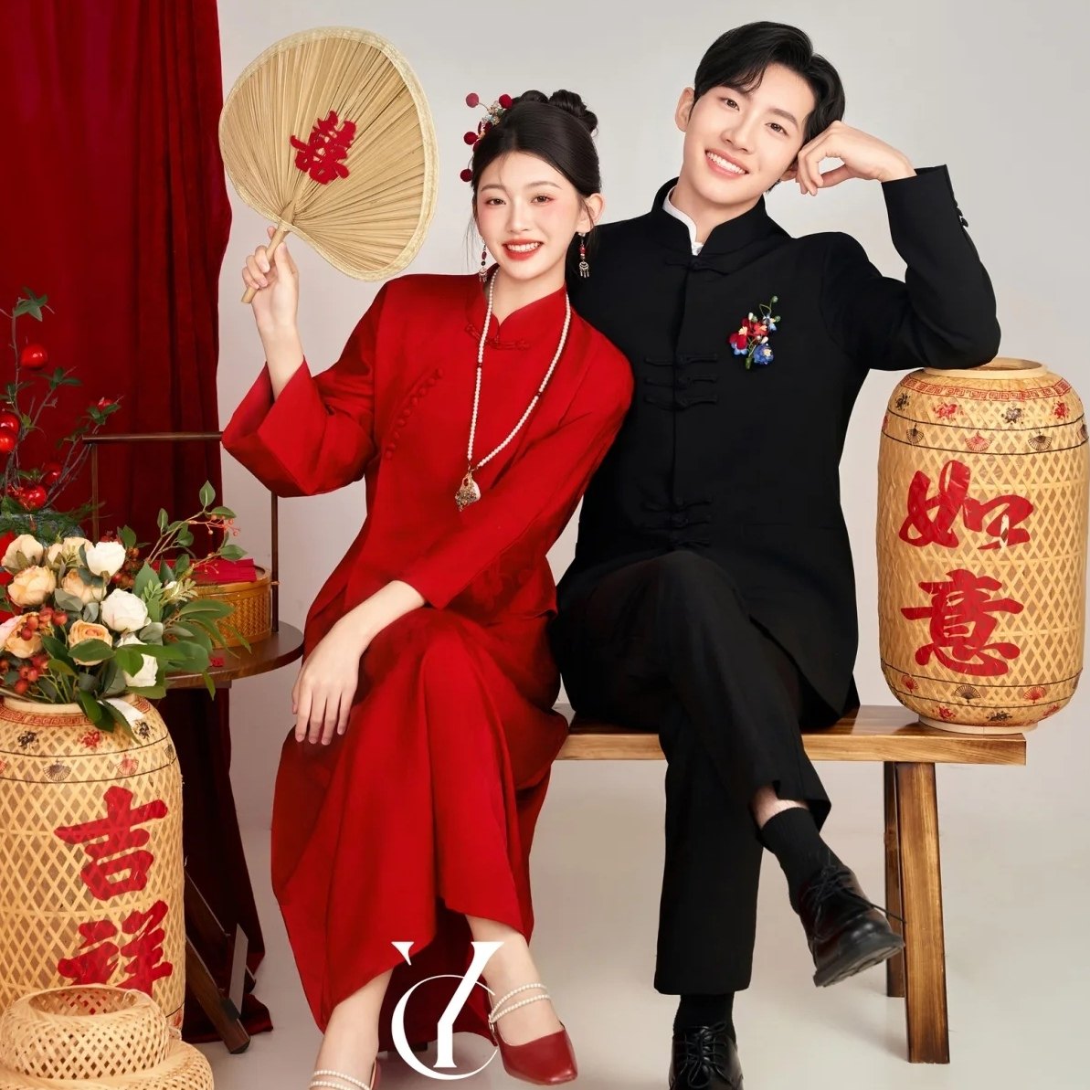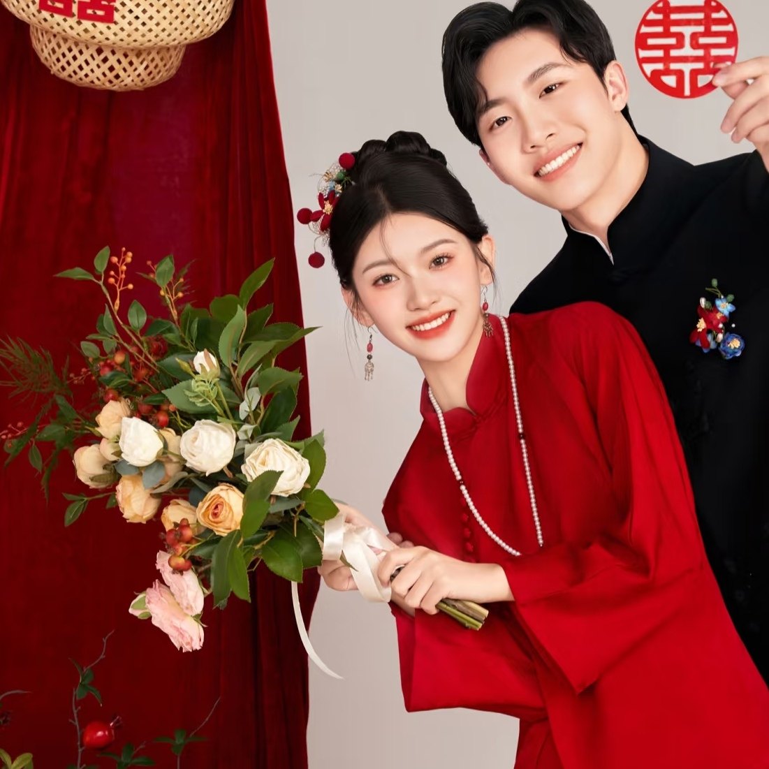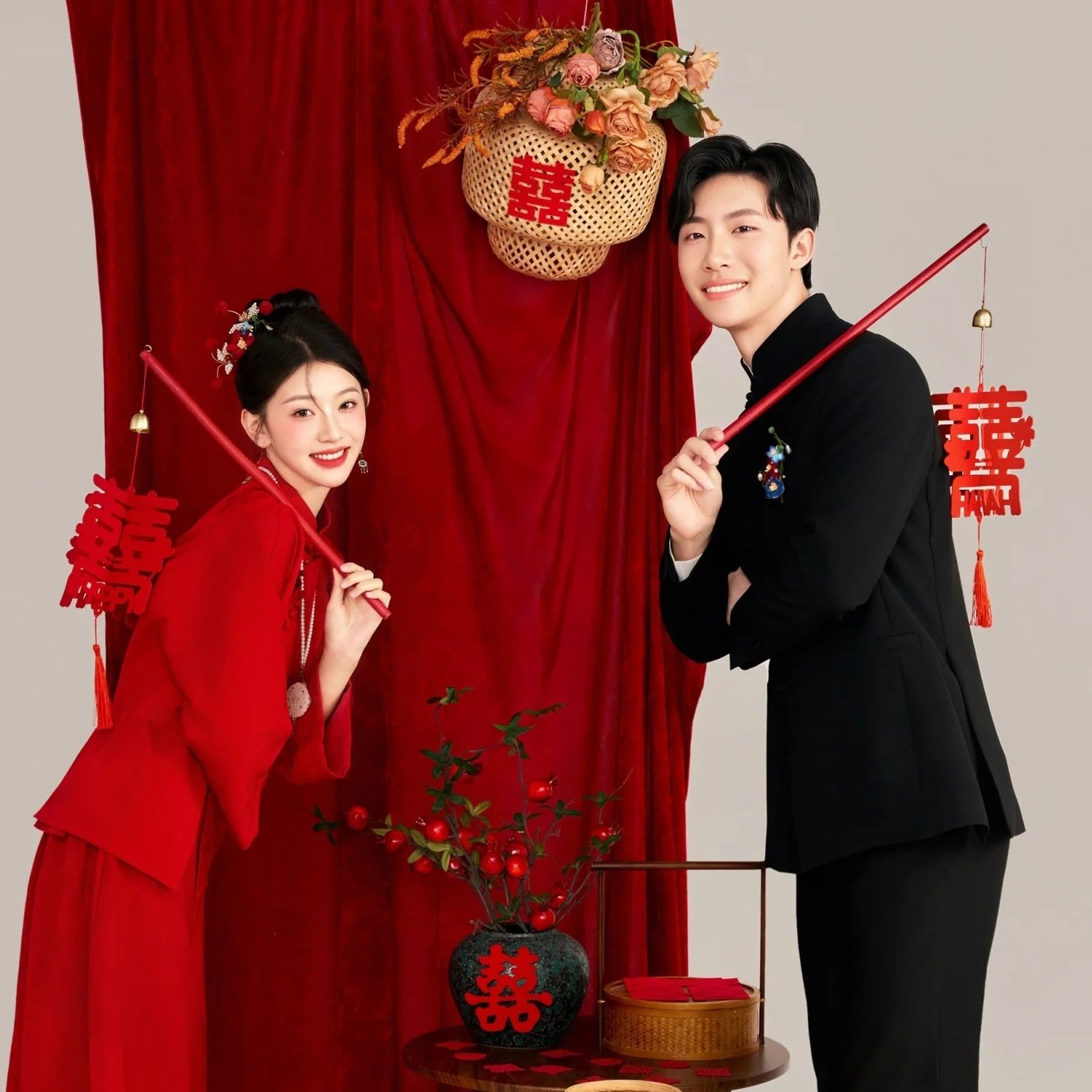 新中式婚纱摄影喜嫁风拍摄道具藤编镂空灯笼木凳子油纸灯笼国潮风
