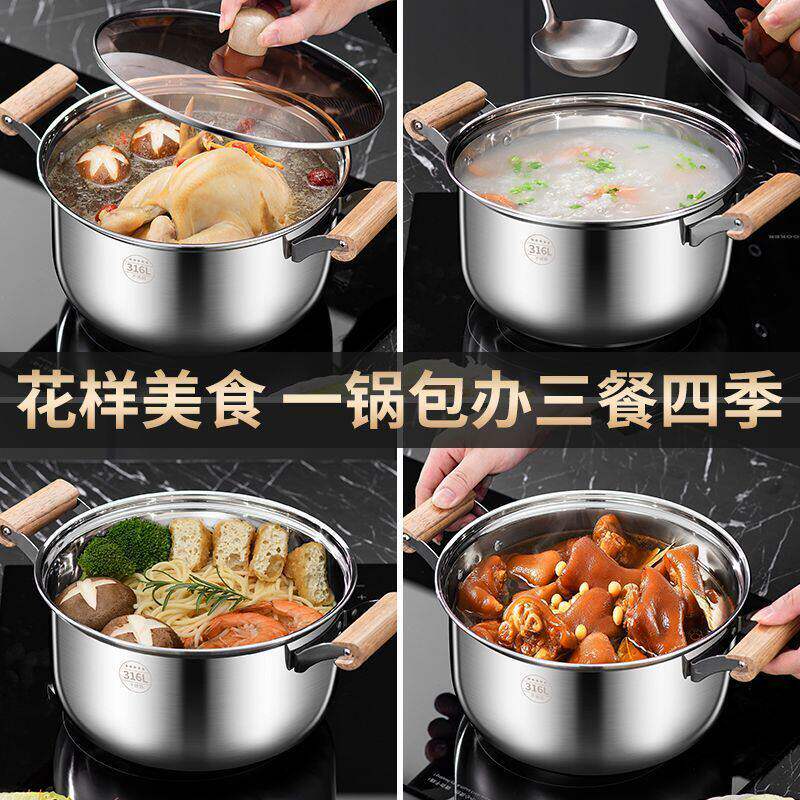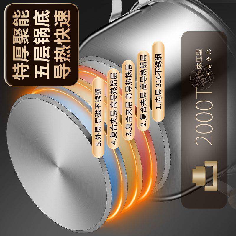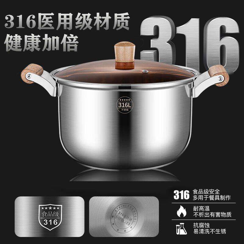 康巴赫德国316L不锈钢汤锅复底蒸锅煲粥双层加厚家用燃气电磁a31