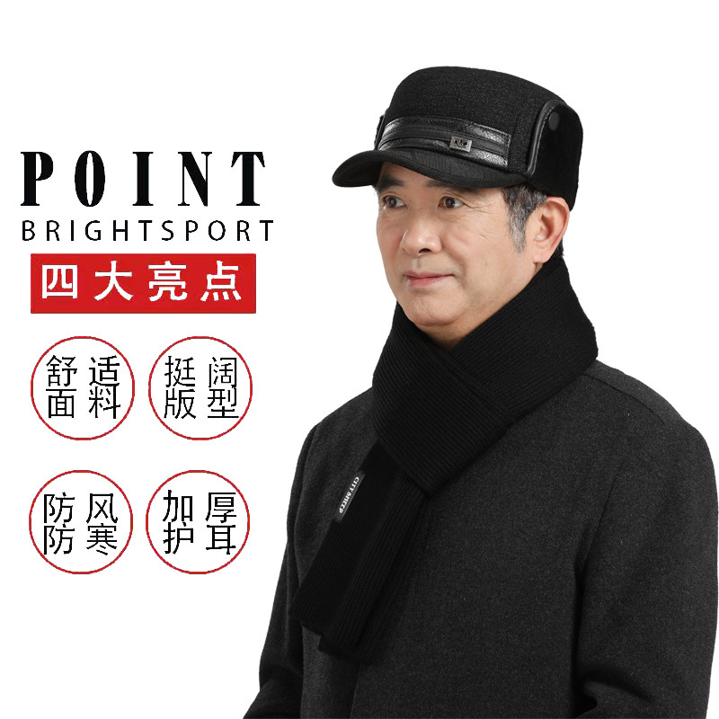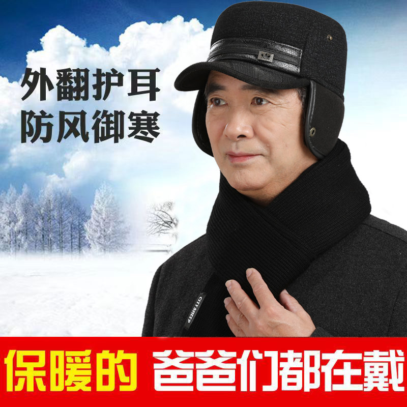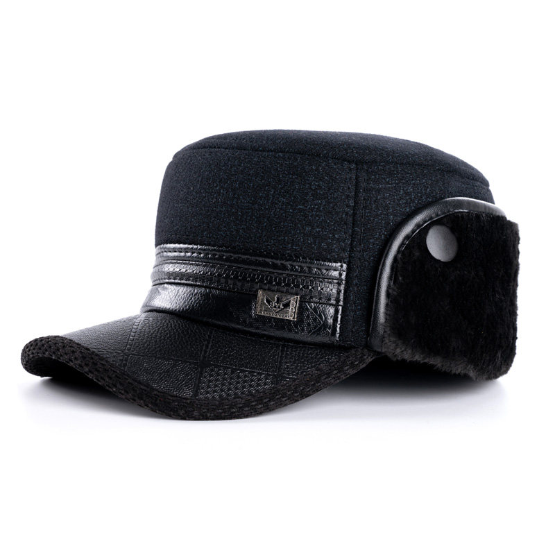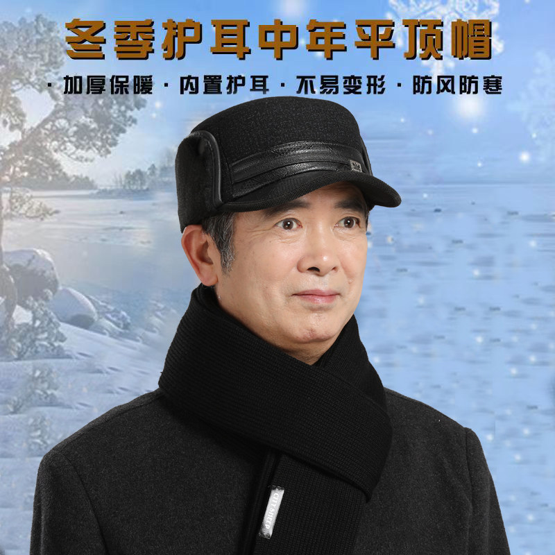 中老年人帽子男加厚保暖平顶帽爸爸爷爷防寒棉帽冬季加绒毛呢防风