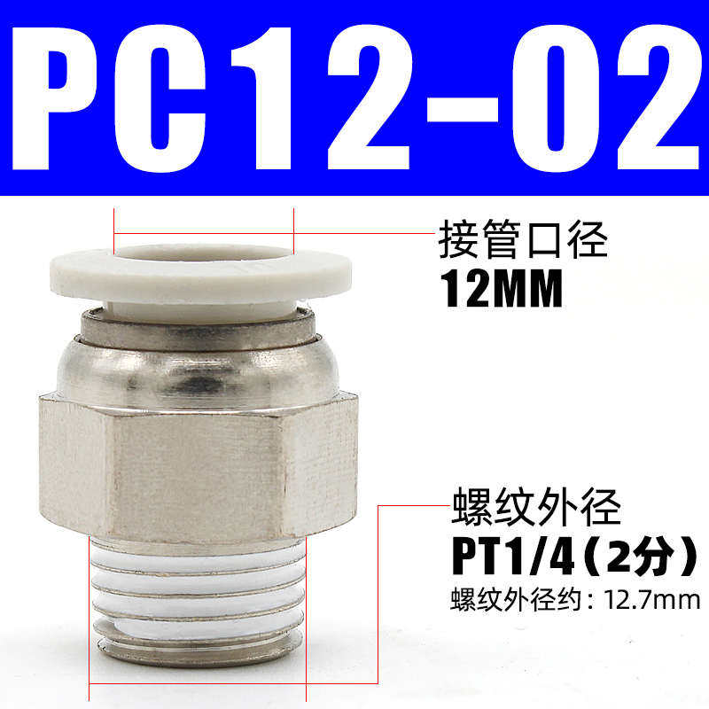 接头气源-接头直通气动/快接6外螺纹插02-pc8元件丝气管外铜m5快