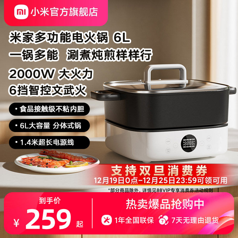 【政府补贴至高省15%】小米官旗米家多功能电火锅6L分体式涮煮煎