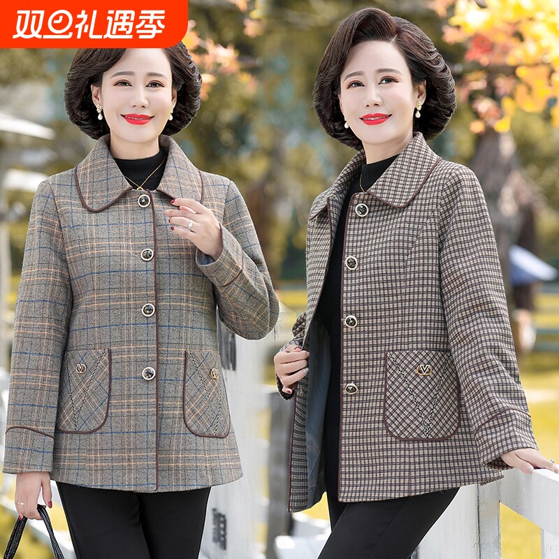 中年妈妈春秋小西装短外套女2025新款中老年洋气减龄格子上衣大气