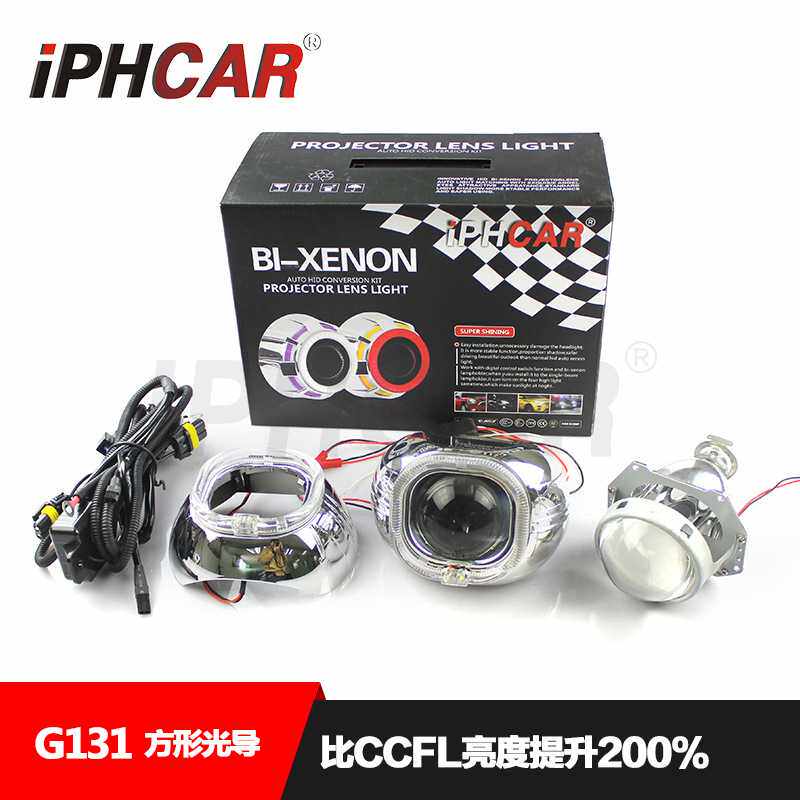 IPHCAR直销G131方形光导一体化 大灯透镜罩子 高亮LED天使眼 车灯