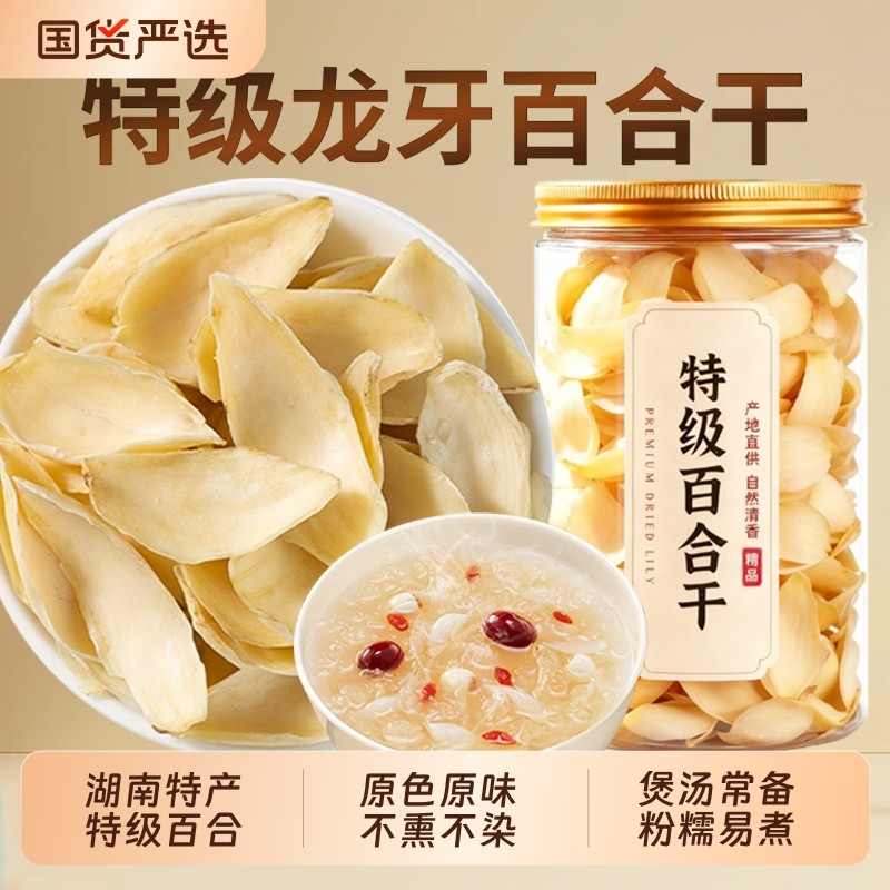 湖南特产龙牙百合干片 原色无硫食用百合干货 莲子银耳百合搭档