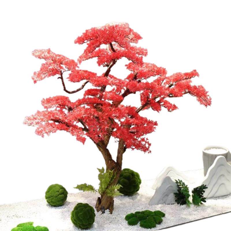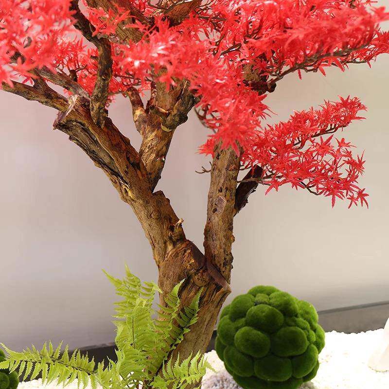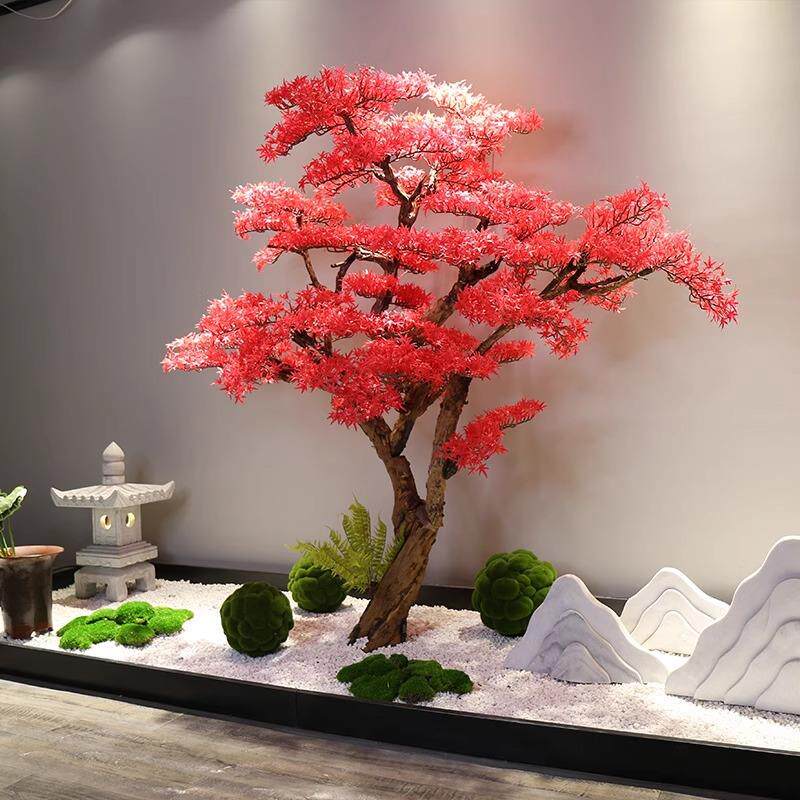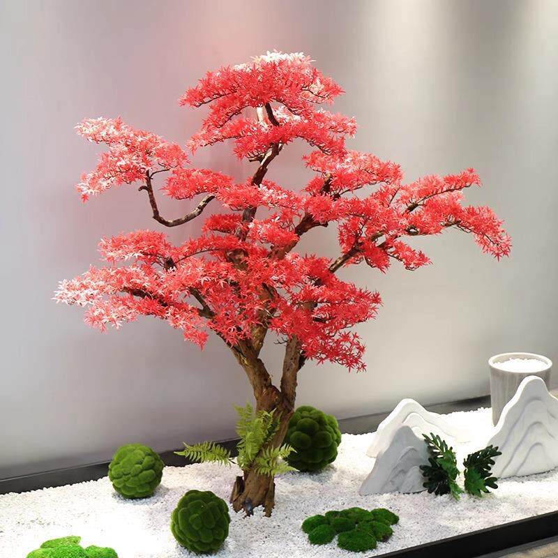 新中式仿真松树红色迎客松假树植物摆件客厅玄关装饰酒店大厅造景