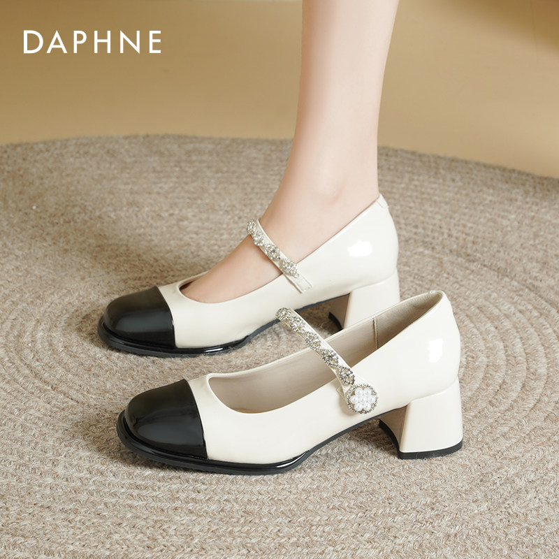 达芙妮玛丽珍女鞋2026新款春季气质高跟鞋黑色单鞋法式小皮鞋子女