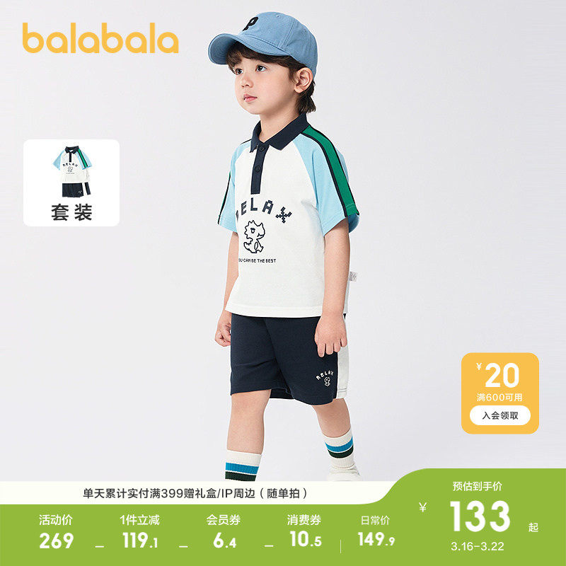 巴拉巴拉童装男童短袖套装速干两件套学院风夏装2026休闲时尚百搭