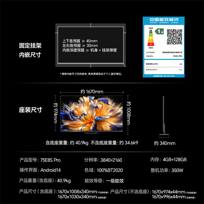 海信RGB-MiniLED电视E8S Pro 75吋 4200分区H7芯片世界杯定制电视
