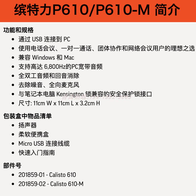 缤特力 Plantronics P610 P620-M 视频会议全向麦克风 桌面扬声器