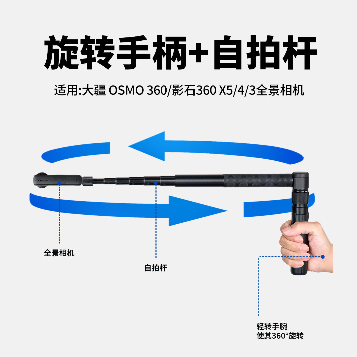 子弹时间隐形杆适用于影石Insta360X5/X4 大疆osmo360全景相机延长杆隐形自拍杆旋转手柄大疆Action5/4支架
