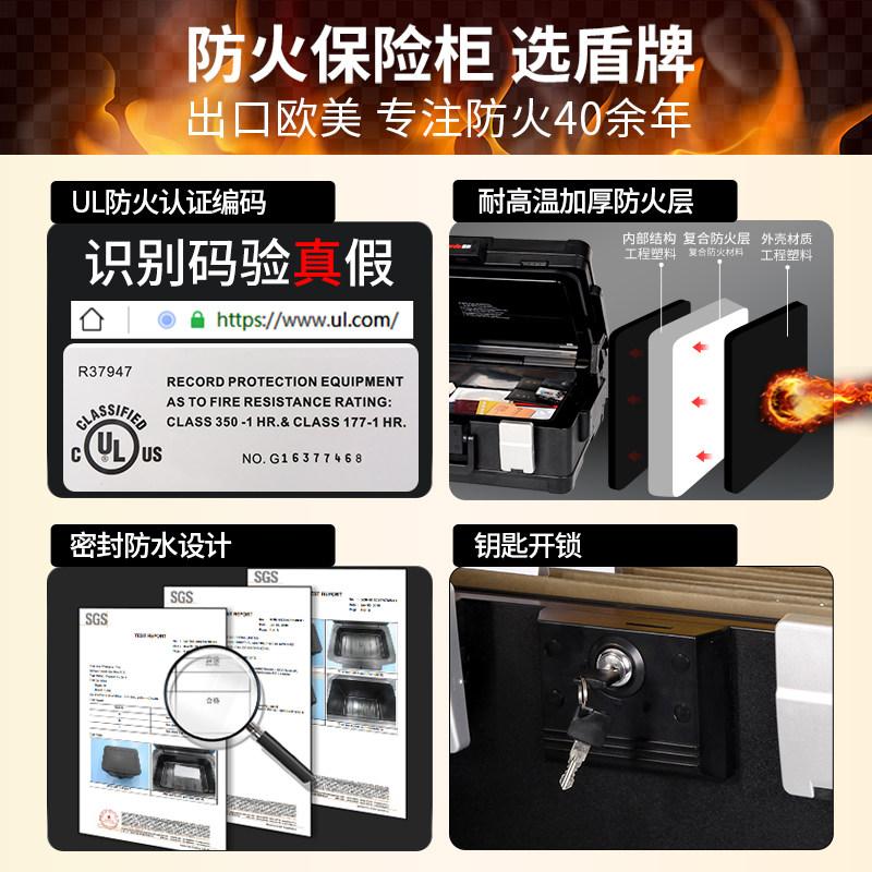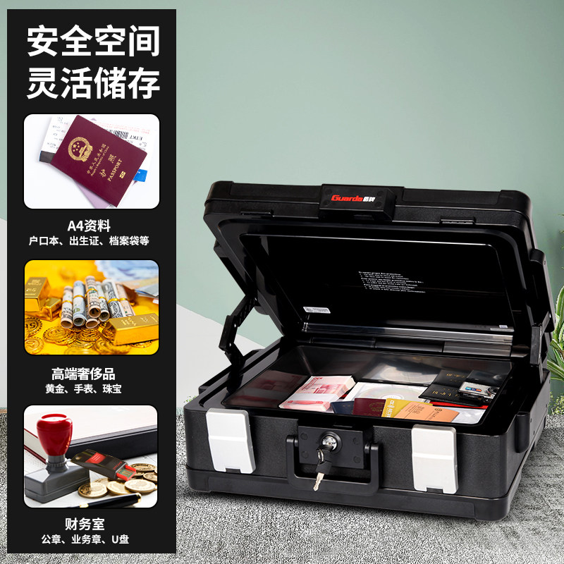 盾牌旗舰店1104保险柜家用办公小型防火防水便携手提式保险箱车载上翻式机械钥匙锁A4文件收藏卡砖箱收纳盒