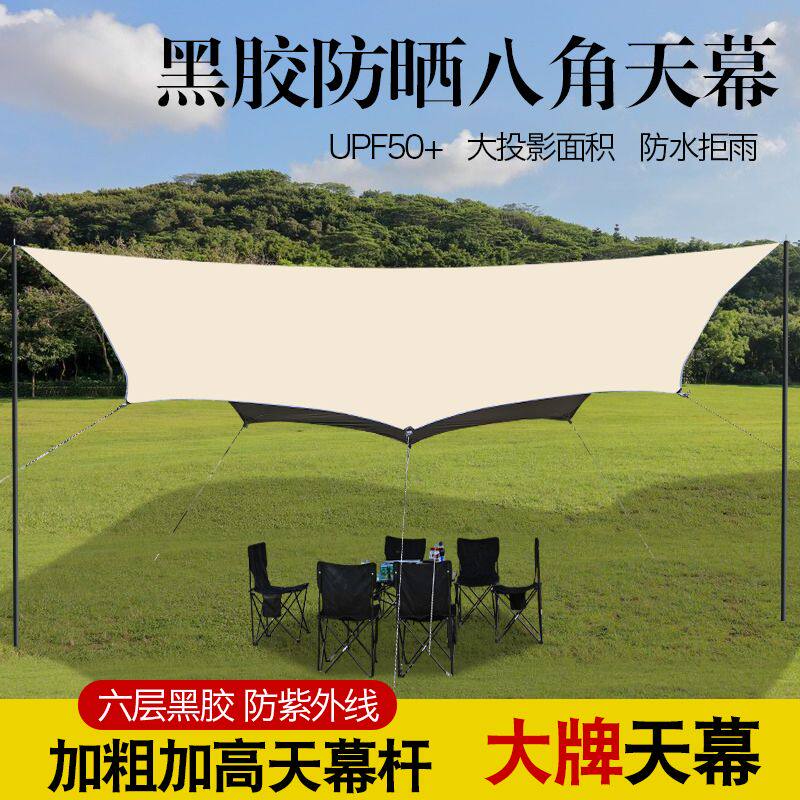 黑胶天幕帐篷户外露营遮阳加厚防晒八角野营野餐防雨蝶形遮阳棚