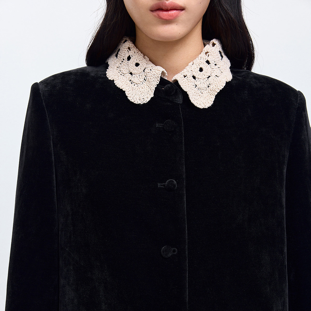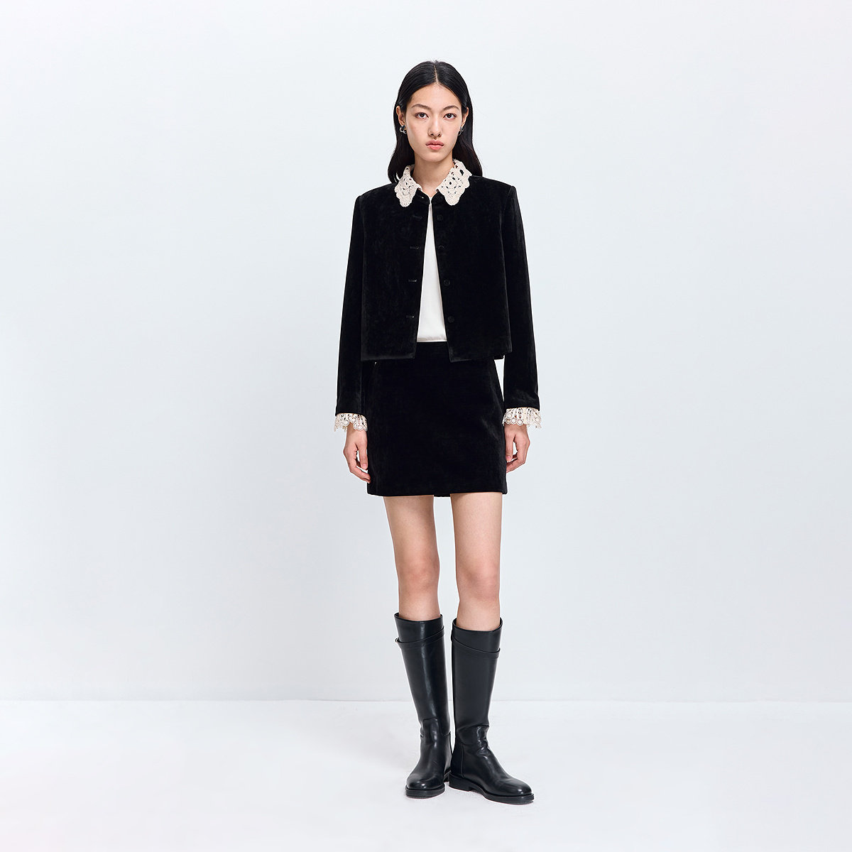 LILY2026春新款女装法式撞色绣花翻领单排扣气质通勤黑色夹克外套