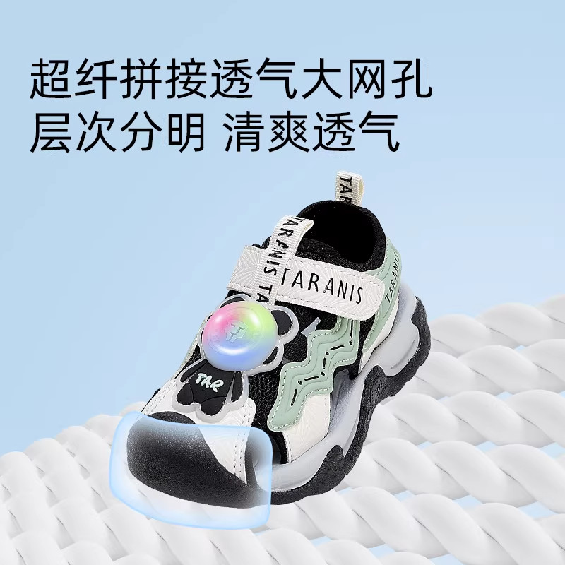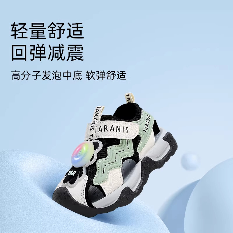泰兰尼斯儿童闪灯凉鞋男童闪灯鞋夏季新款女童凉鞋透气缕空儿童鞋