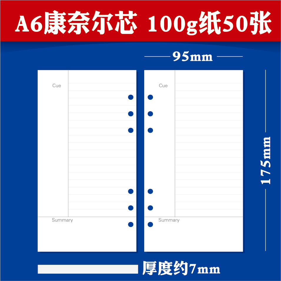 灵感盒子 A6活页本手账本内芯替换芯小号记事本本子活页芯康奈尔方格横线空白点阵日周计划加厚优质100g纸张
