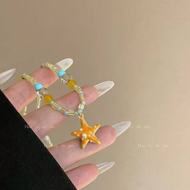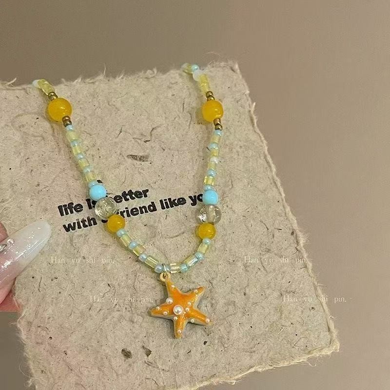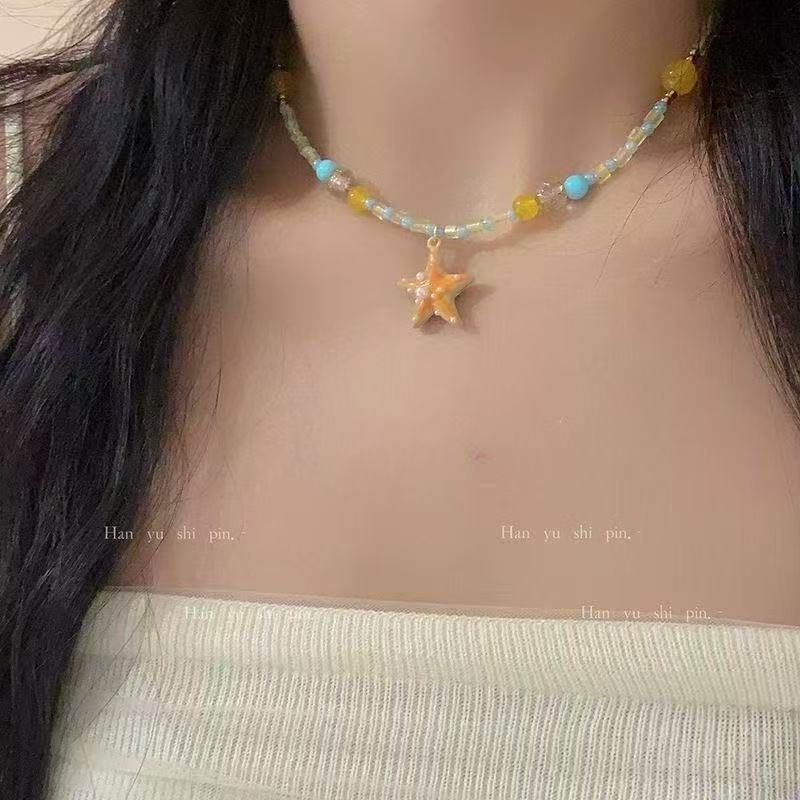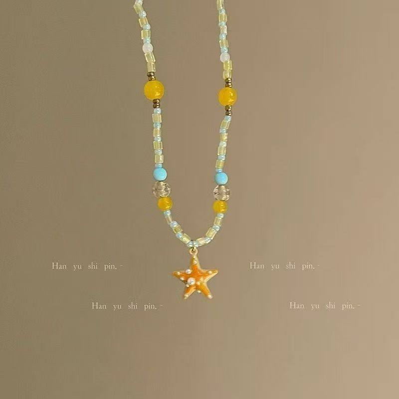 多巴胺百搭2025海星串珠夏天项链新款海边度假锁骨链橙色颈链