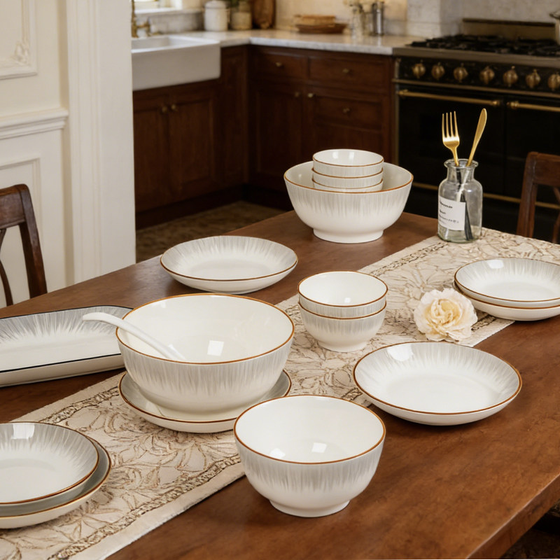 陶瓷碗碟2025新款碗盘餐具家用饭面碗汤碗组合乔迁送礼高颜值陶瓷