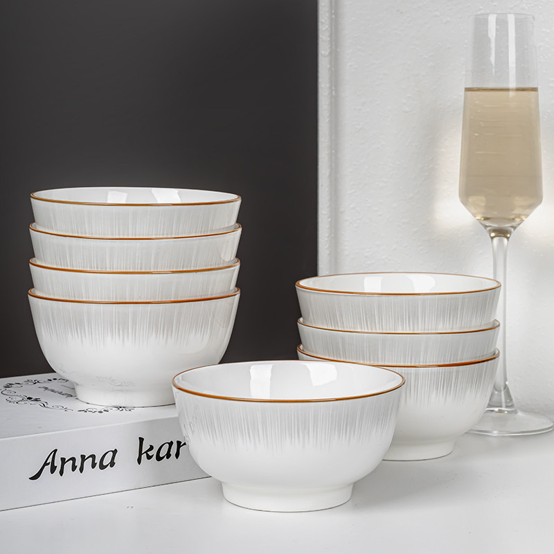 碗家用碗高脚防烫景德镇碗饭碗高级感新款描金饭碗陶瓷餐具吃饭碗