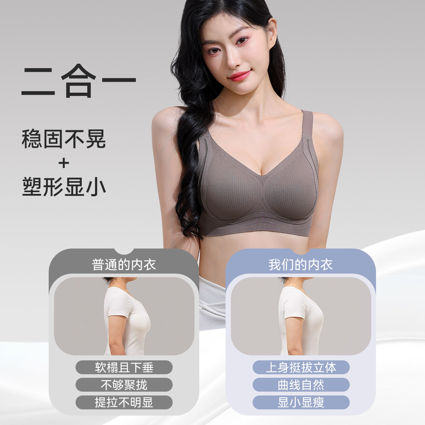 无痕内衣女小胸聚拢夏季薄款运动一体美背心式固定杯无钢圈文胸罩