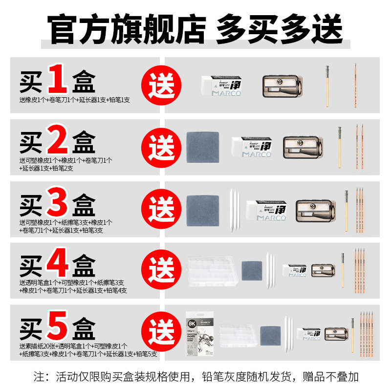 Marco马可原木素描铅笔素描工具套装4b铅笔素描笔美术生专用铅笔2b素描铅笔套装铅笔绘画专用炭笔6b绘画铅笔