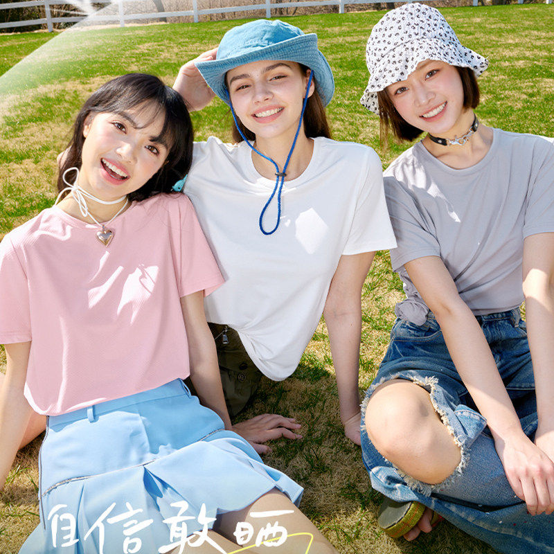 陈都灵丨凉感T森马短袖T恤女修身纯色基础夏季新款圆领白色女装