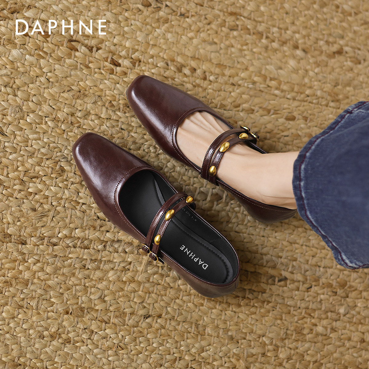 达芙妮浅口单鞋女2026春季新款法式方头小皮鞋妈妈鞋复古玛丽珍鞋