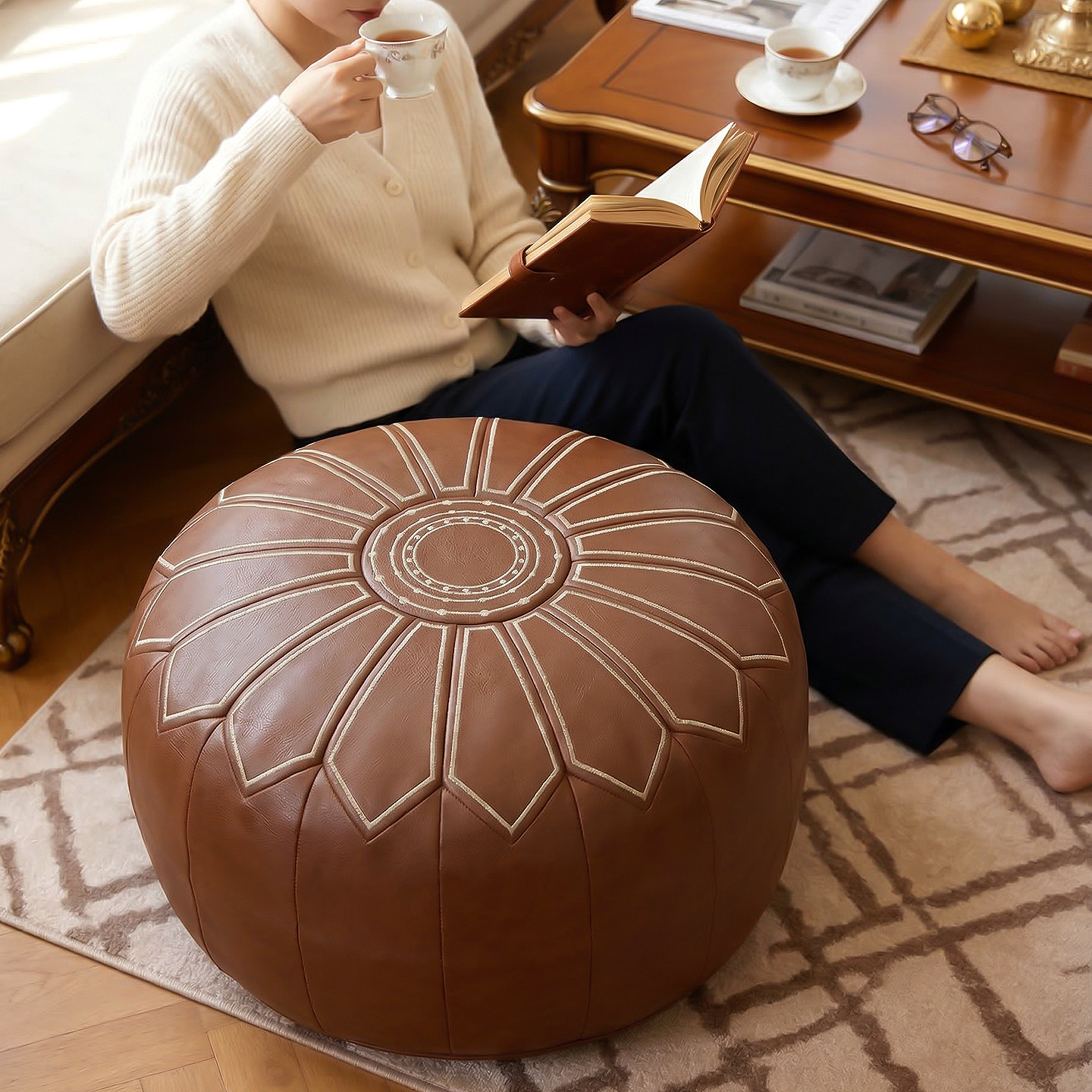 收纳包摩洛哥坐墩垫pu皮墩皮蒲团懒人沙发坐垫榻榻米坐团换鞋凳子