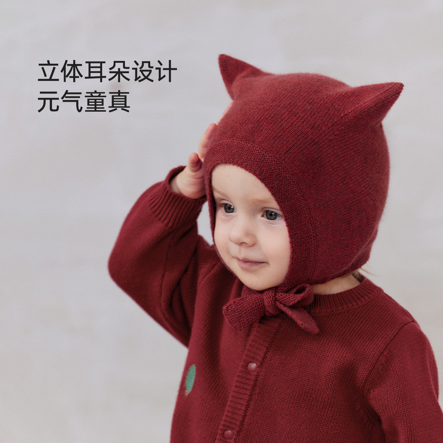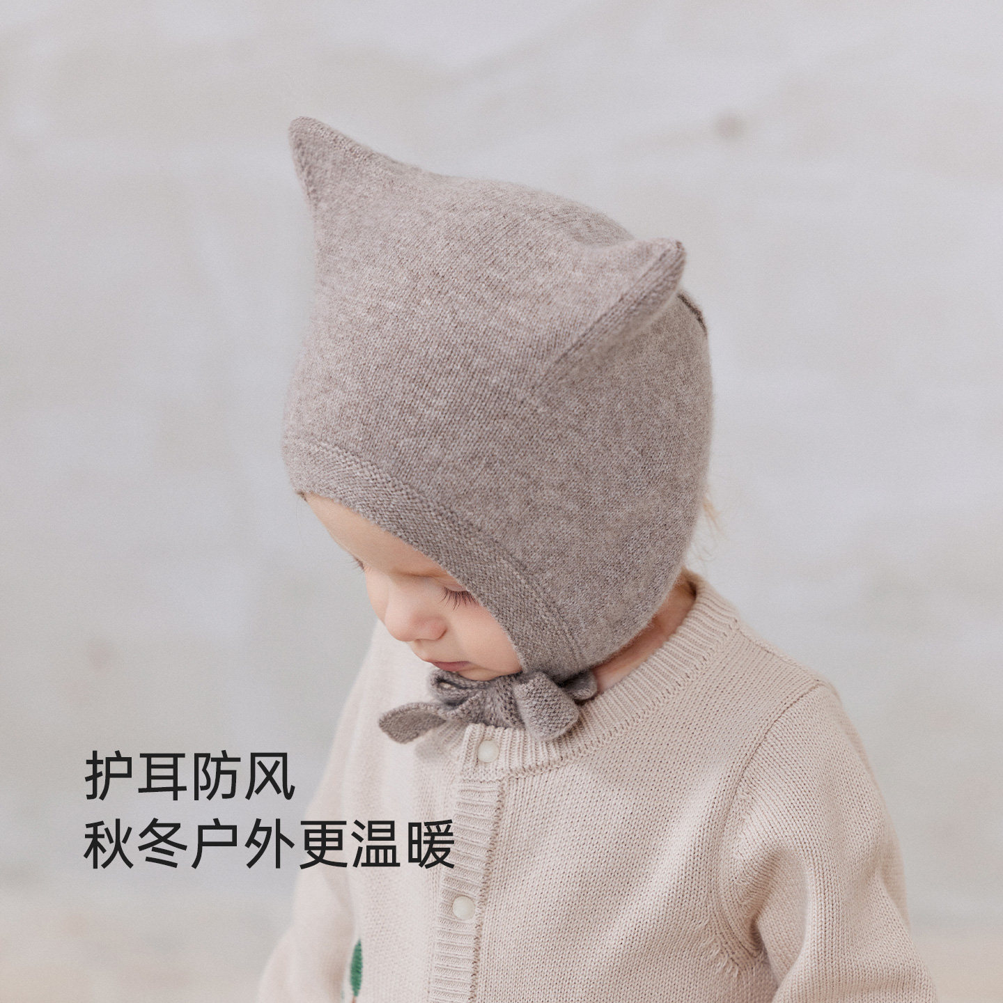 hugz儿童帽子围巾秋冬户外男孩女孩保暖针织毛线帽护耳防风熊仔帽