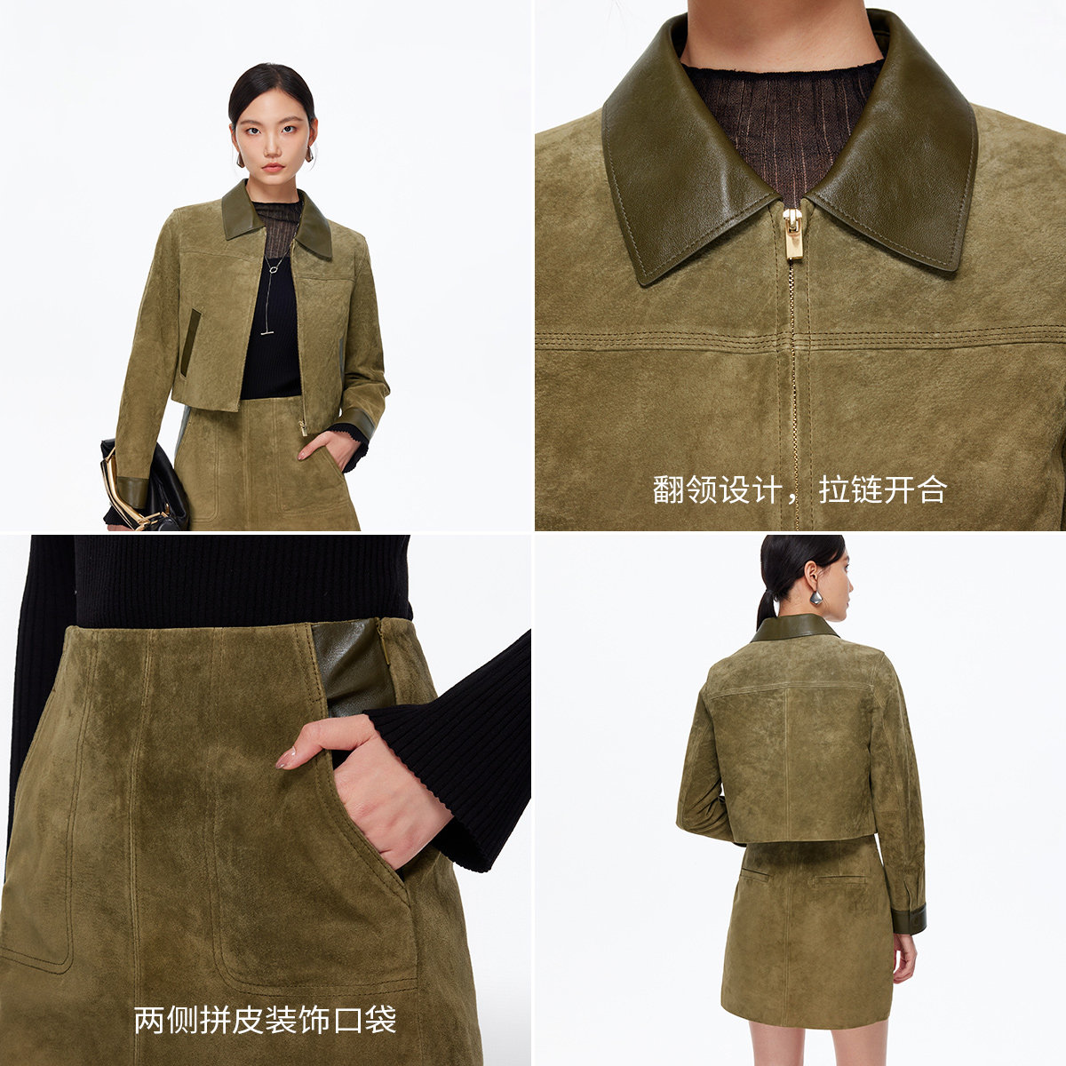 Vero Moda皮衣2025秋季新款翻领拼皮拉链开合百搭短外套325310008