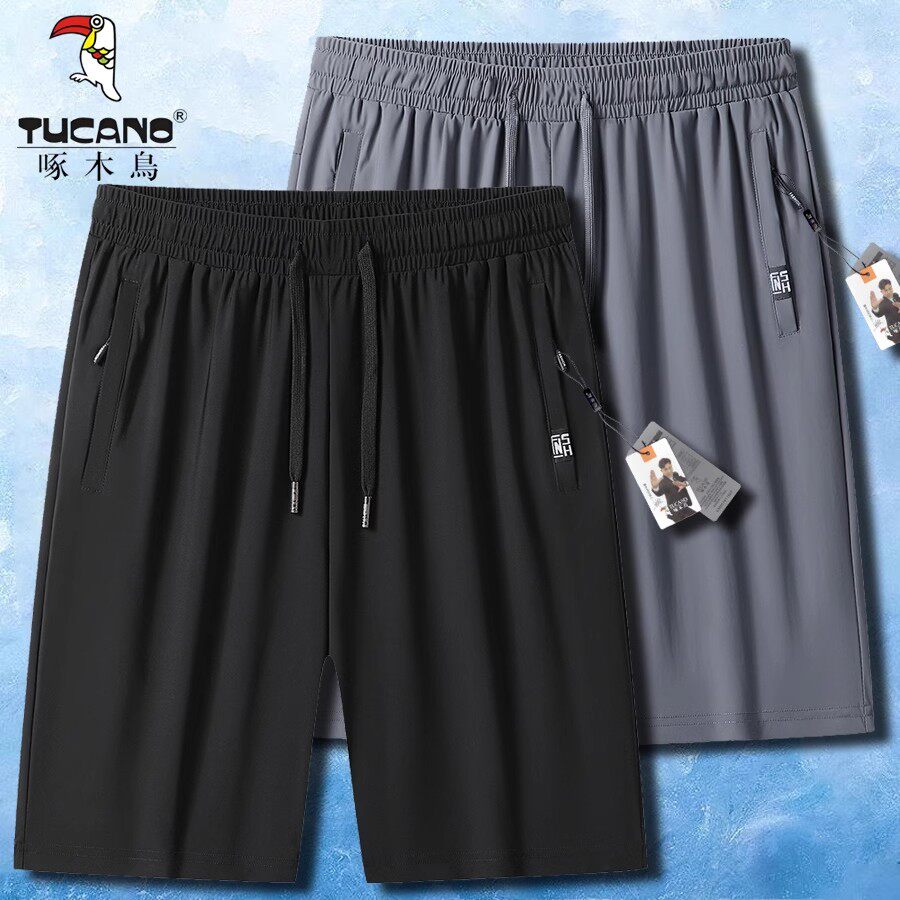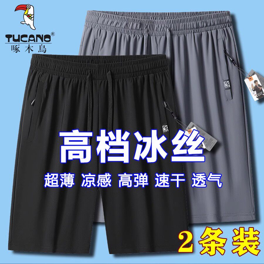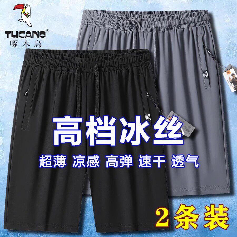 啄木鸟冰丝男士短裤男款夏季薄款速干休闲五分裤宽松大码运动短裤