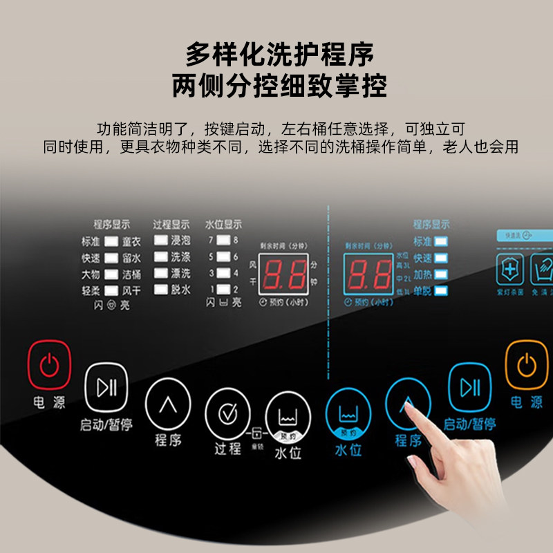 卡雷亚CORREA子母机双桶式母婴分区蓝光加热家用全自动免清洗衣机