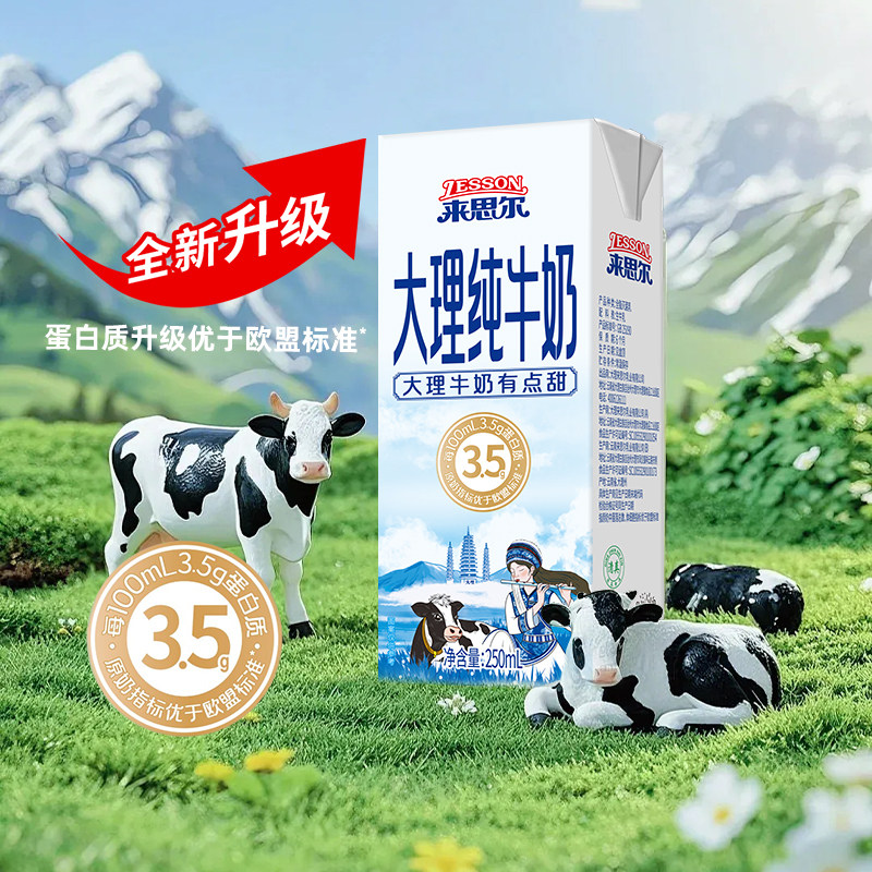 来思尔云南全脂纯牛奶250mL*24盒整箱学生儿童早餐大理乳制品常温