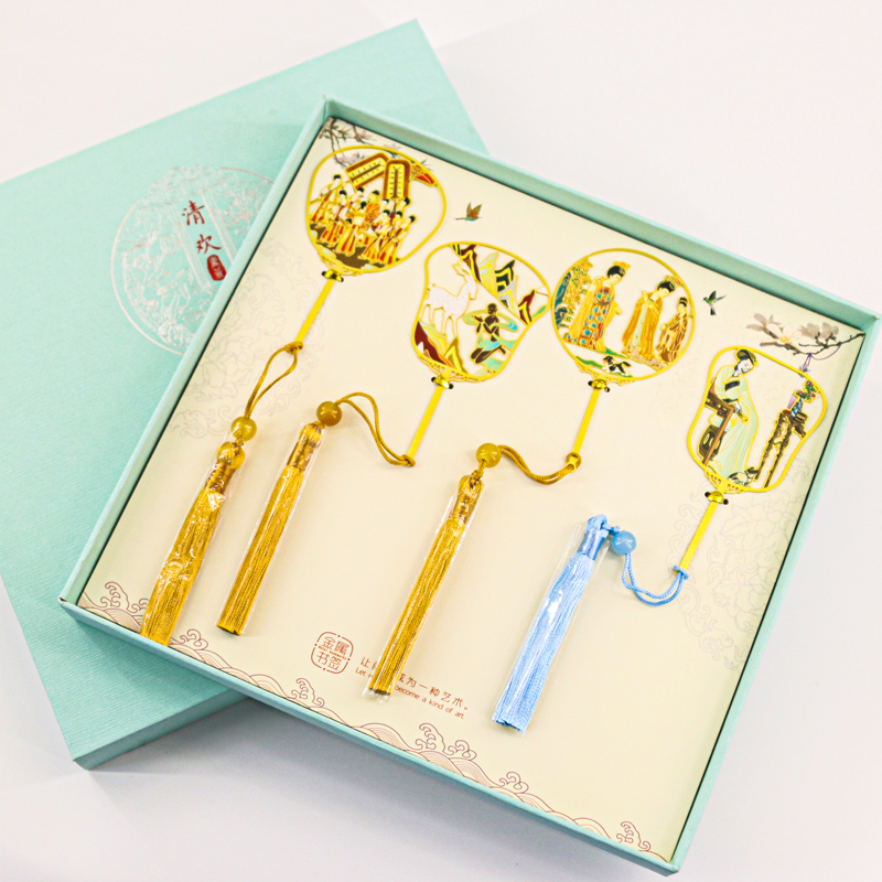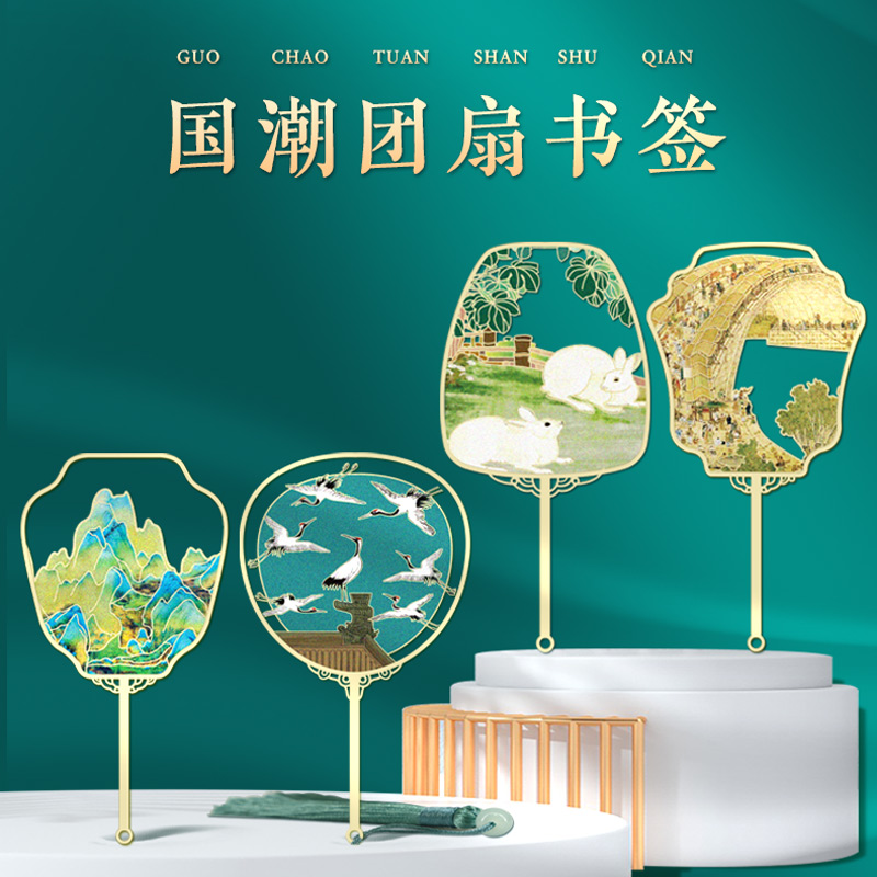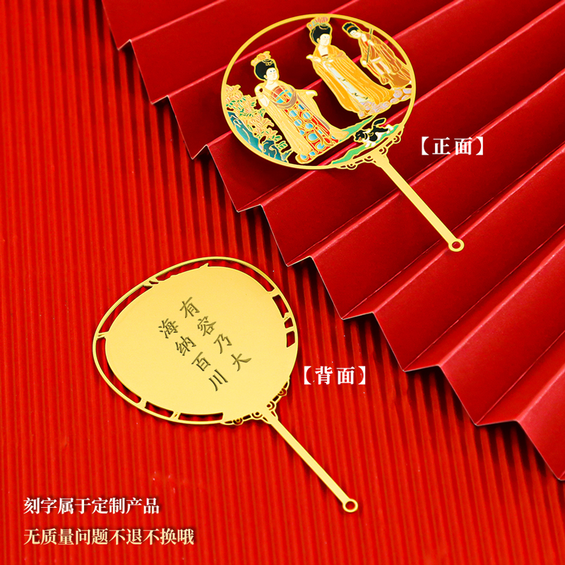 古典中国风名画绘画金属团扇清明上河图千里江山故宫风格定做刻字