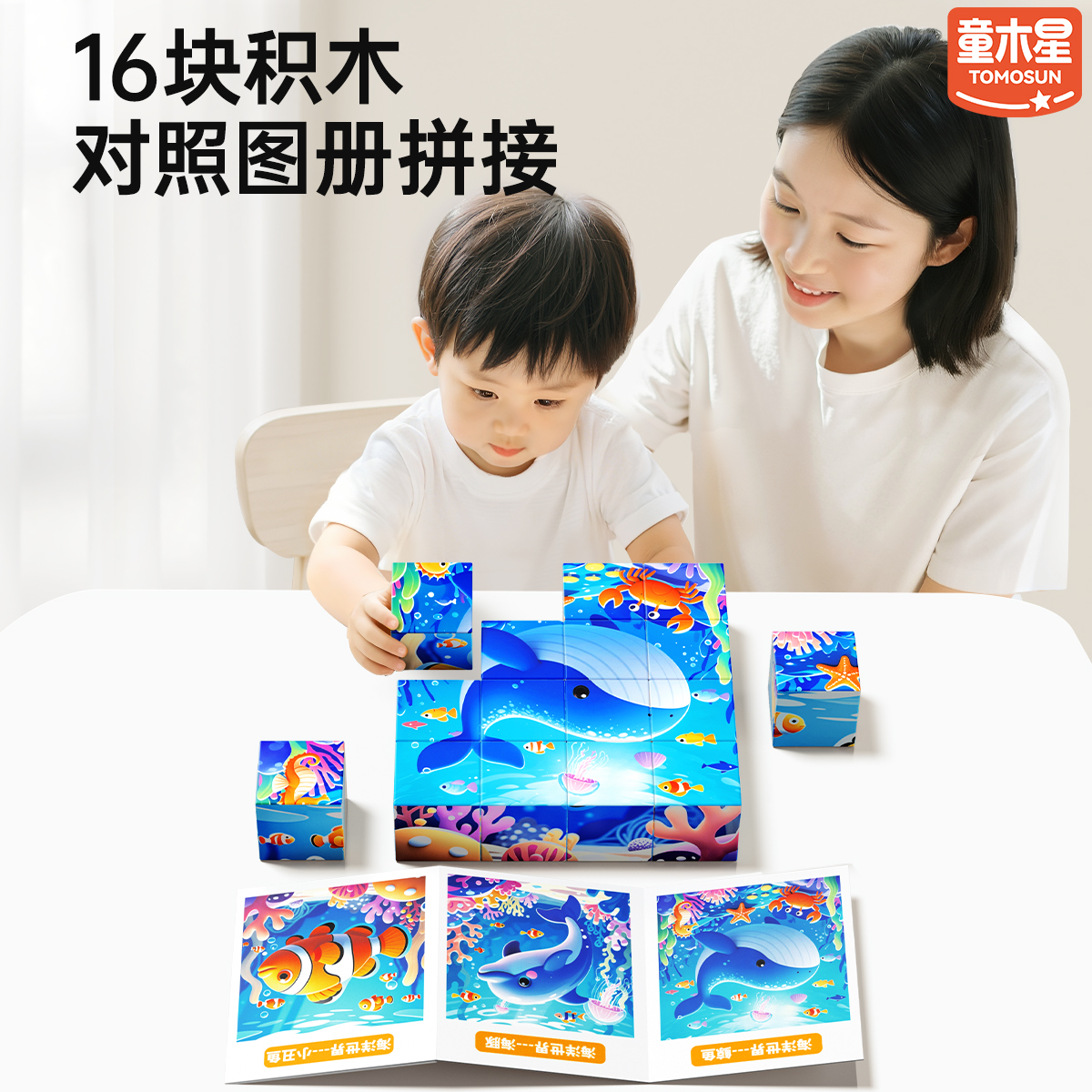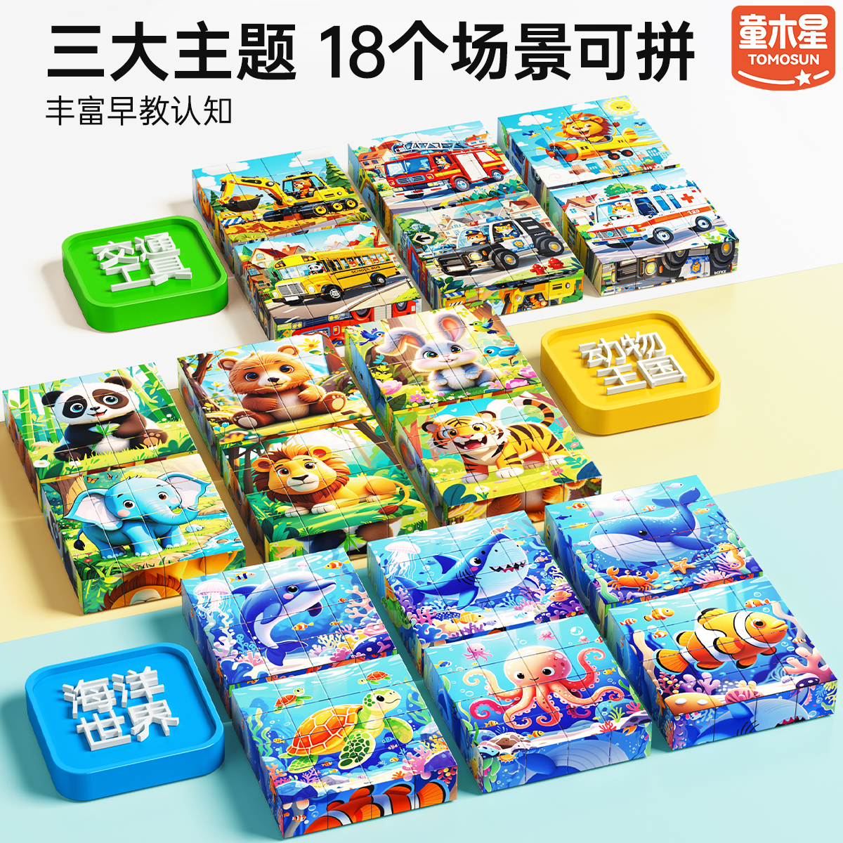 磁力方块拼图早教益智动物积木卡通六面画立体霸王龙拼图玩具塑胶