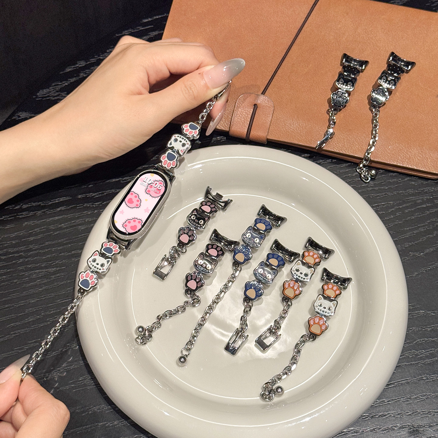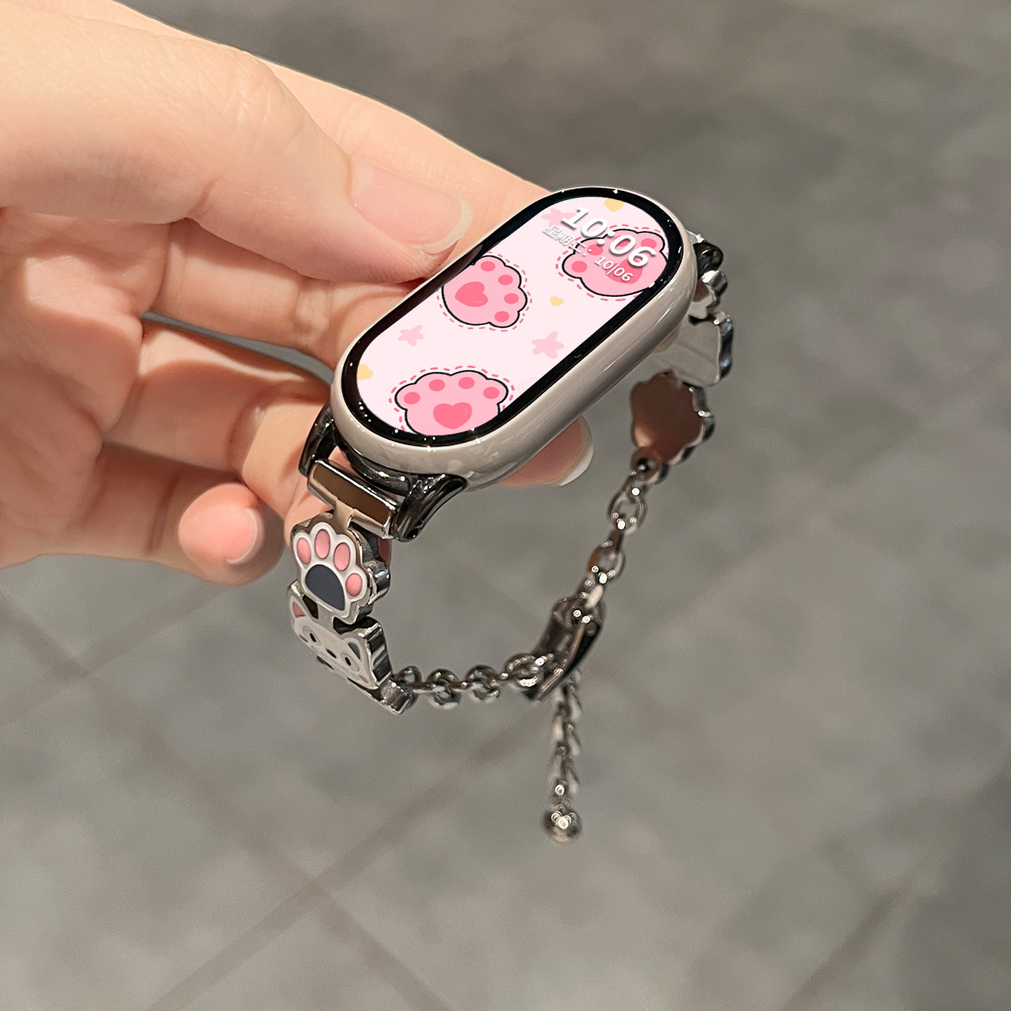 小黑猫适用小米手环10表带新款9/8金属不锈钢猫爪弯片链式10陶瓷版腕带通用NFC夏季智能运动手链手腕带黑色