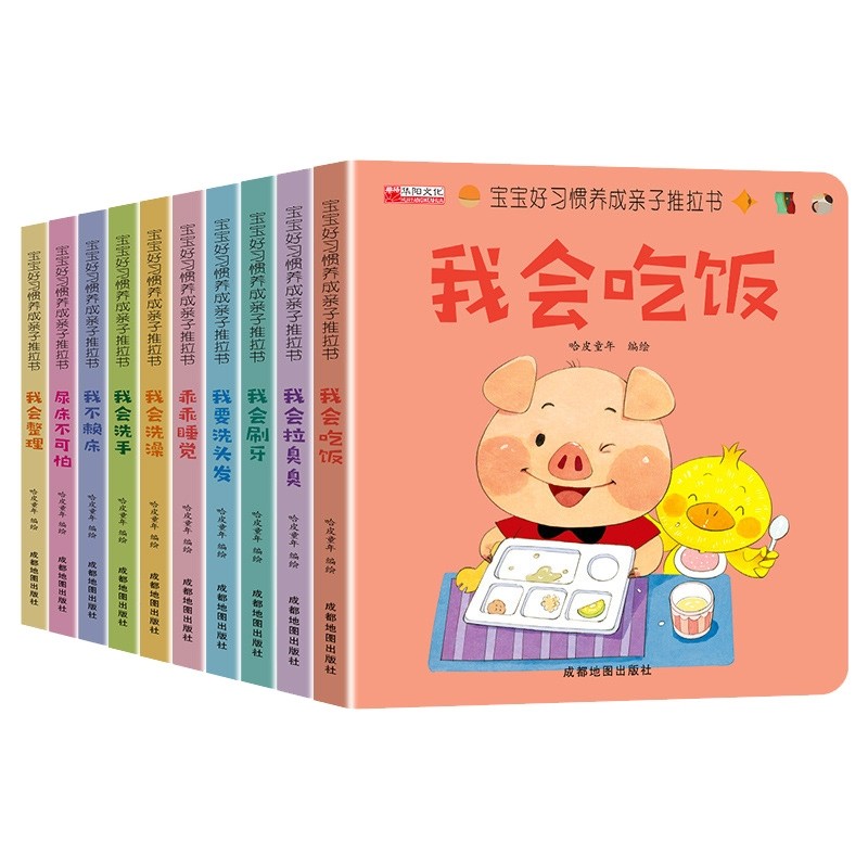 宝宝好习惯养成亲子推拉书全10册婴幼儿启蒙早教1-2岁岁刷牙吃饭拉臭臭行为教养系列儿童绘本0到3岁撕不烂洞洞书故事书本培养阅读