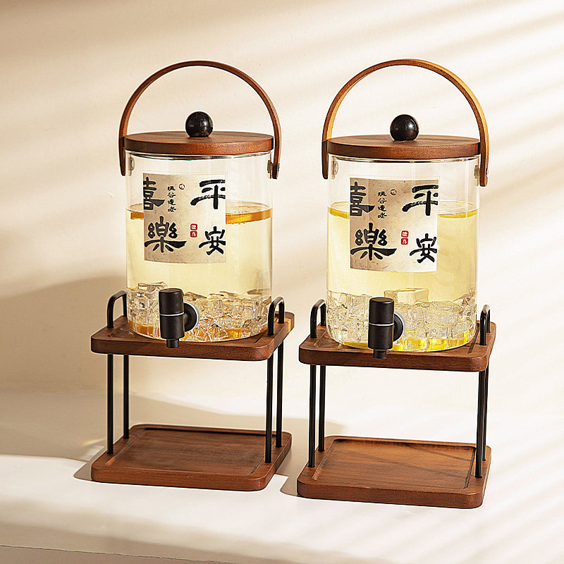 304不锈钢龙头 木质提手 高硼硅玻璃