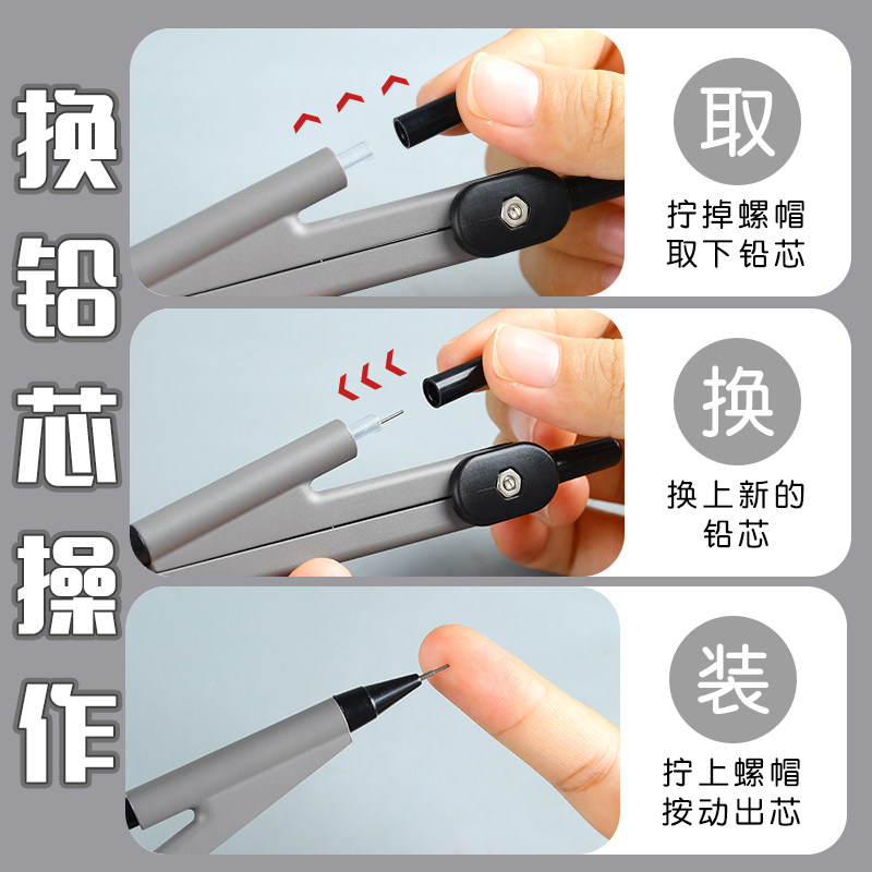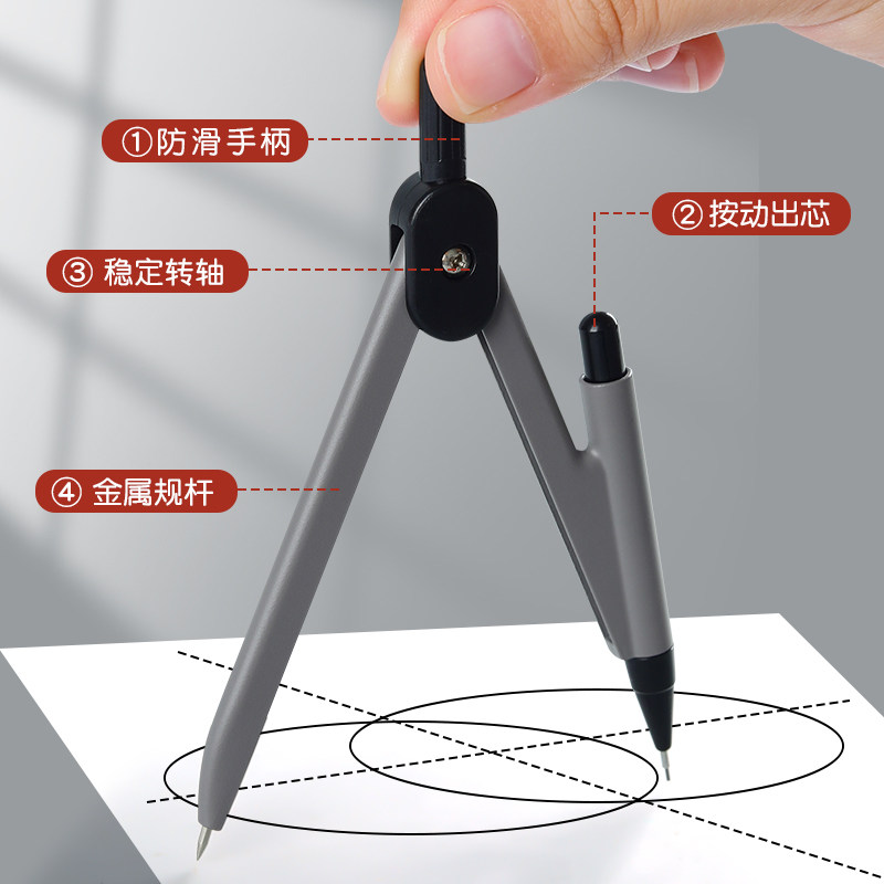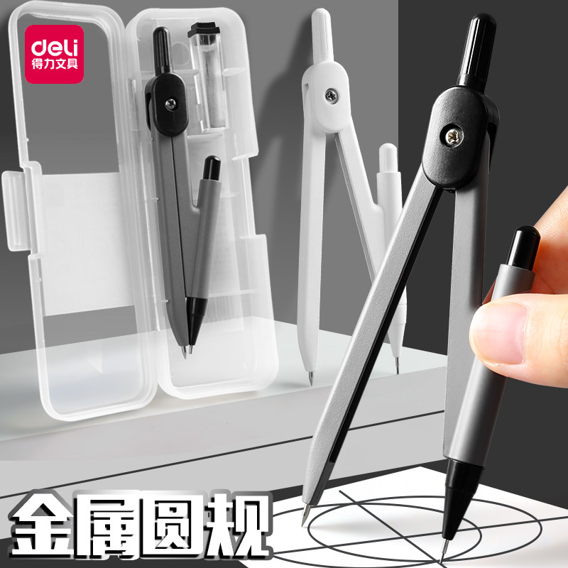 得力圆规学生用实用型数学几何教学中高考考试用金属圆规小学初高中生可替换笔芯绘图按动出芯圆规文具用品