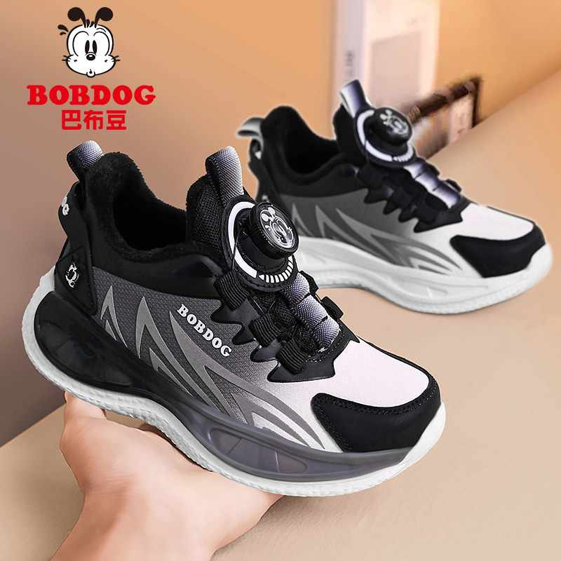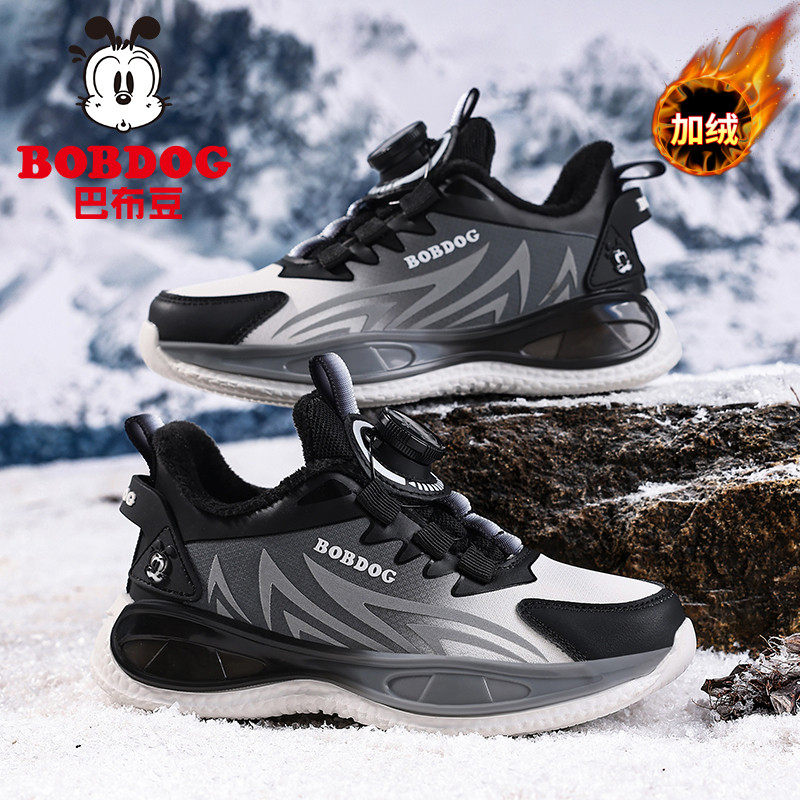 巴布豆童鞋儿童运动鞋秋冬男童鞋钮扣中大童软底跑步鞋休闲二棉鞋