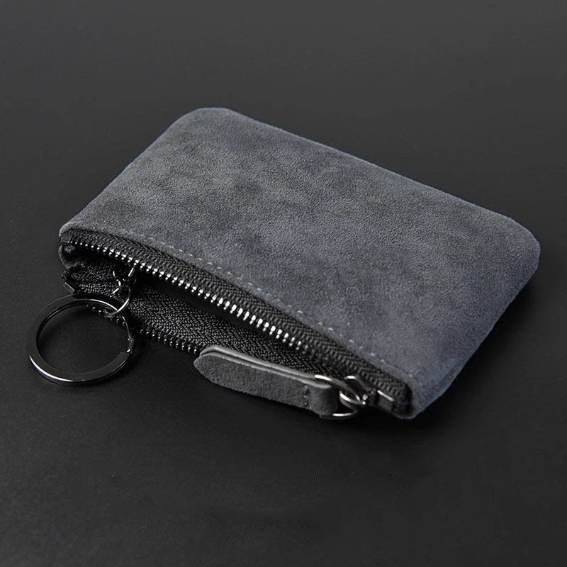 进口翻毛皮零钱包男士拉链收纳包钥匙包钱夹收纳卡包迷你钱包女士