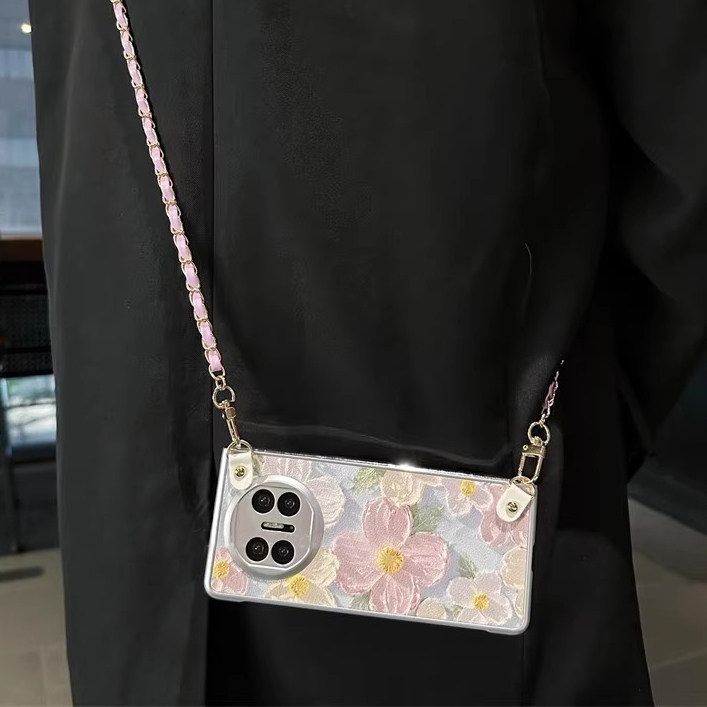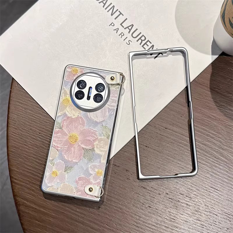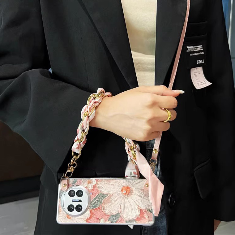 适用于华为MateX6折叠手机壳斜挎背带挂链高档油画花超薄保护套matex5手提丝巾华为x3外壳mtx2时尚创意小众