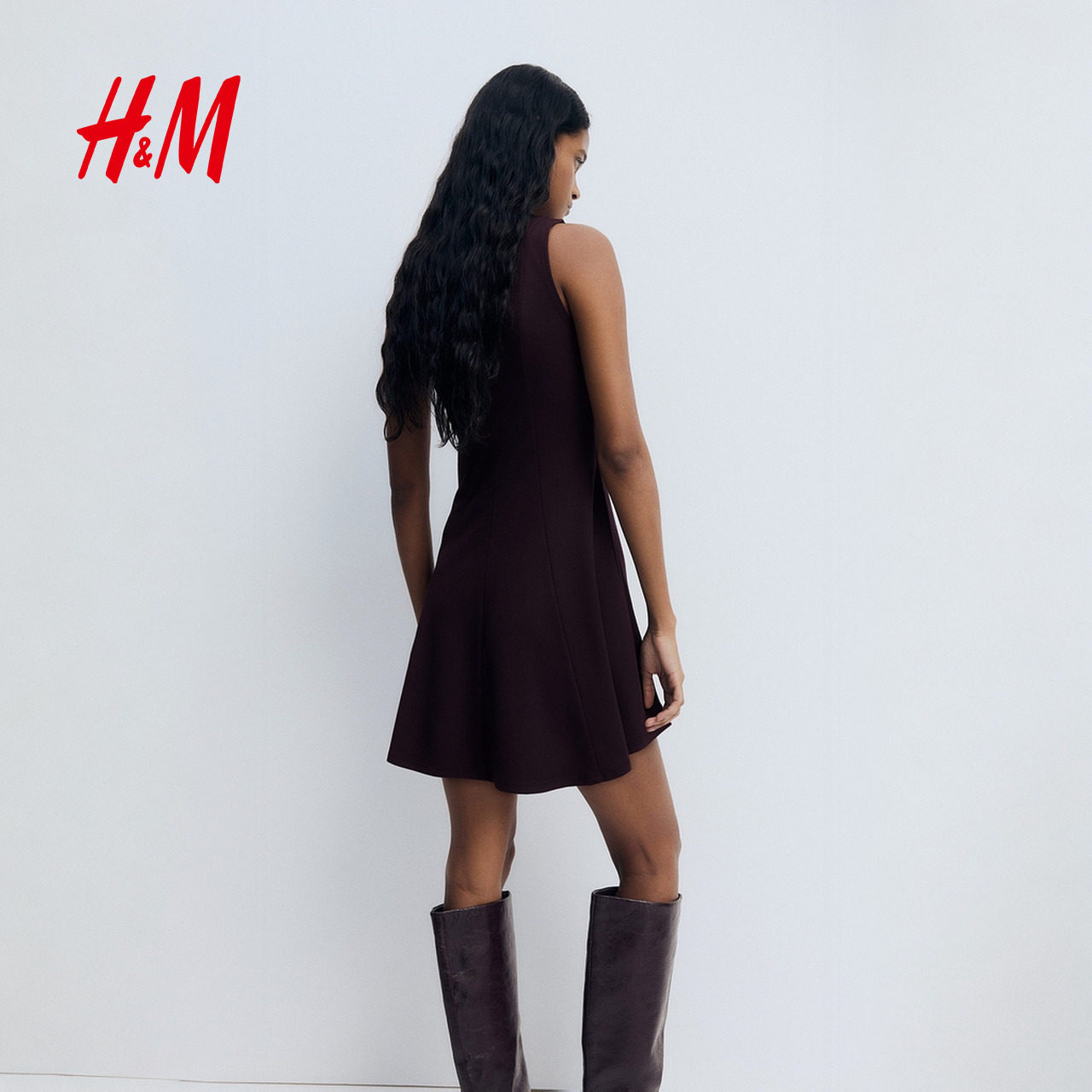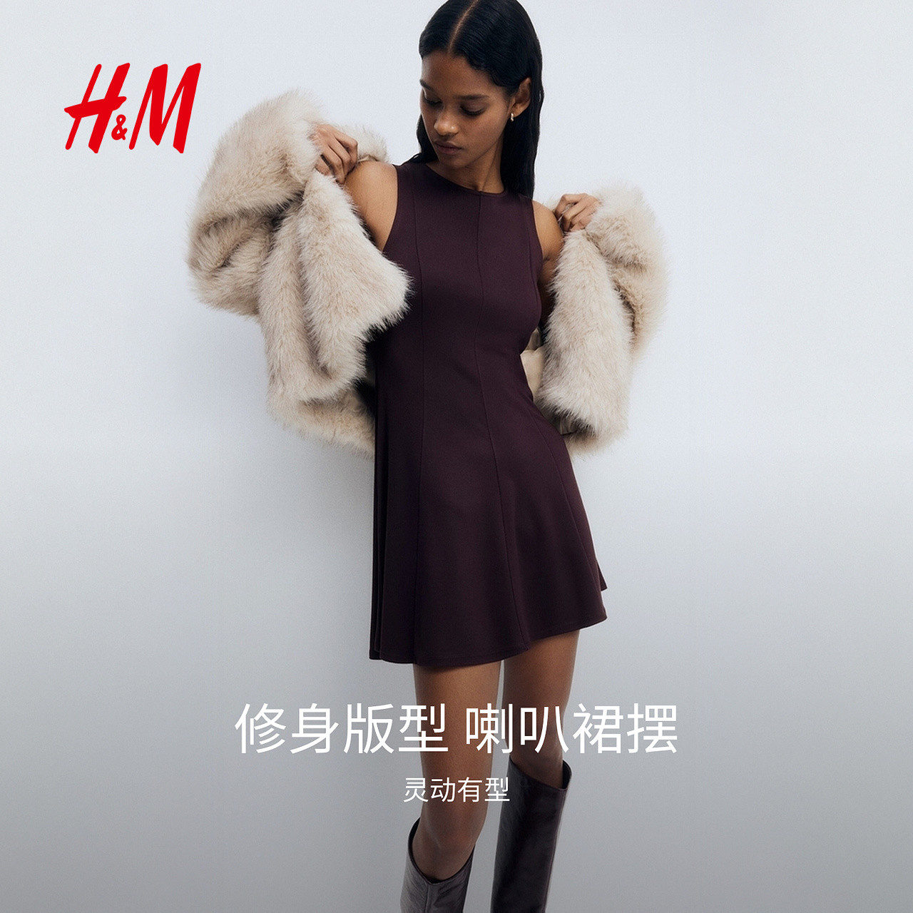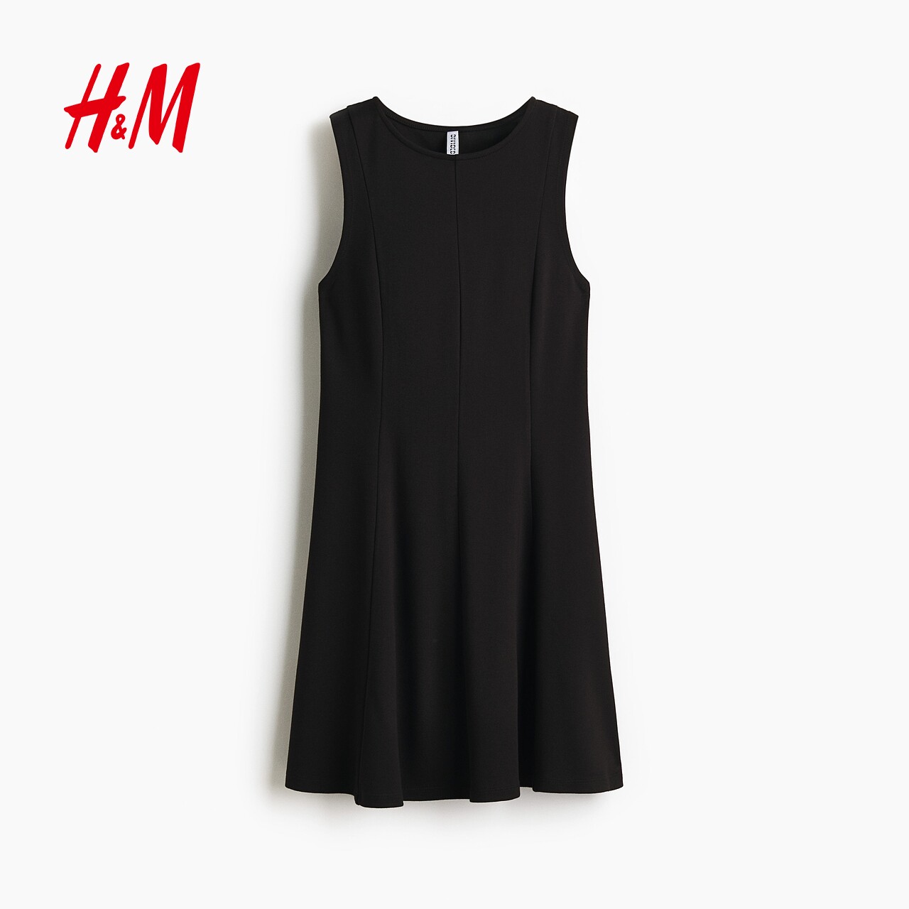 HM女装连衣裙26春季新款千金风小黑裙喇叭裙摆背心式裙子1321300