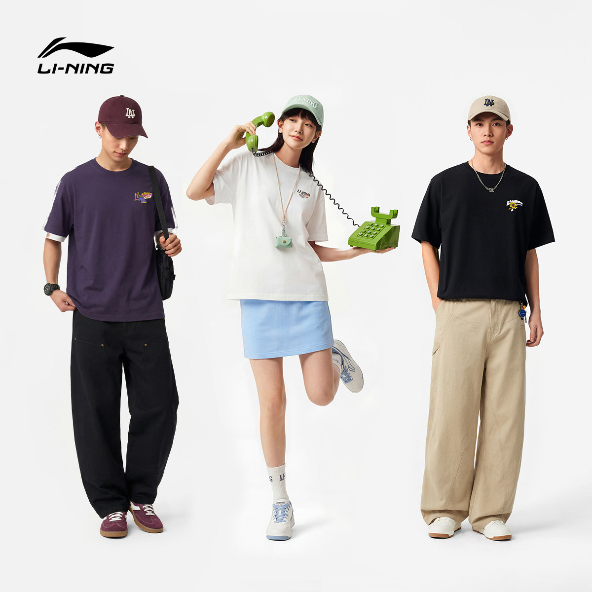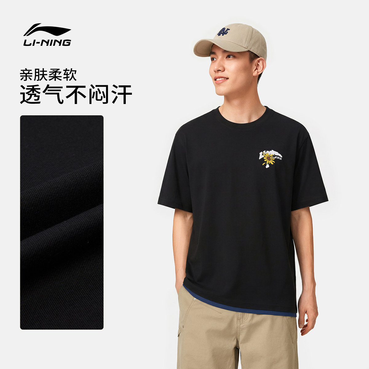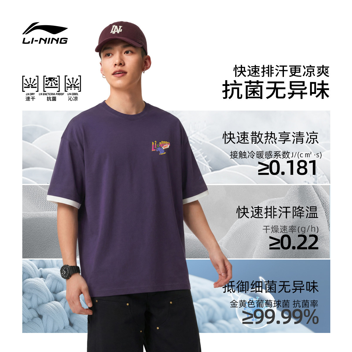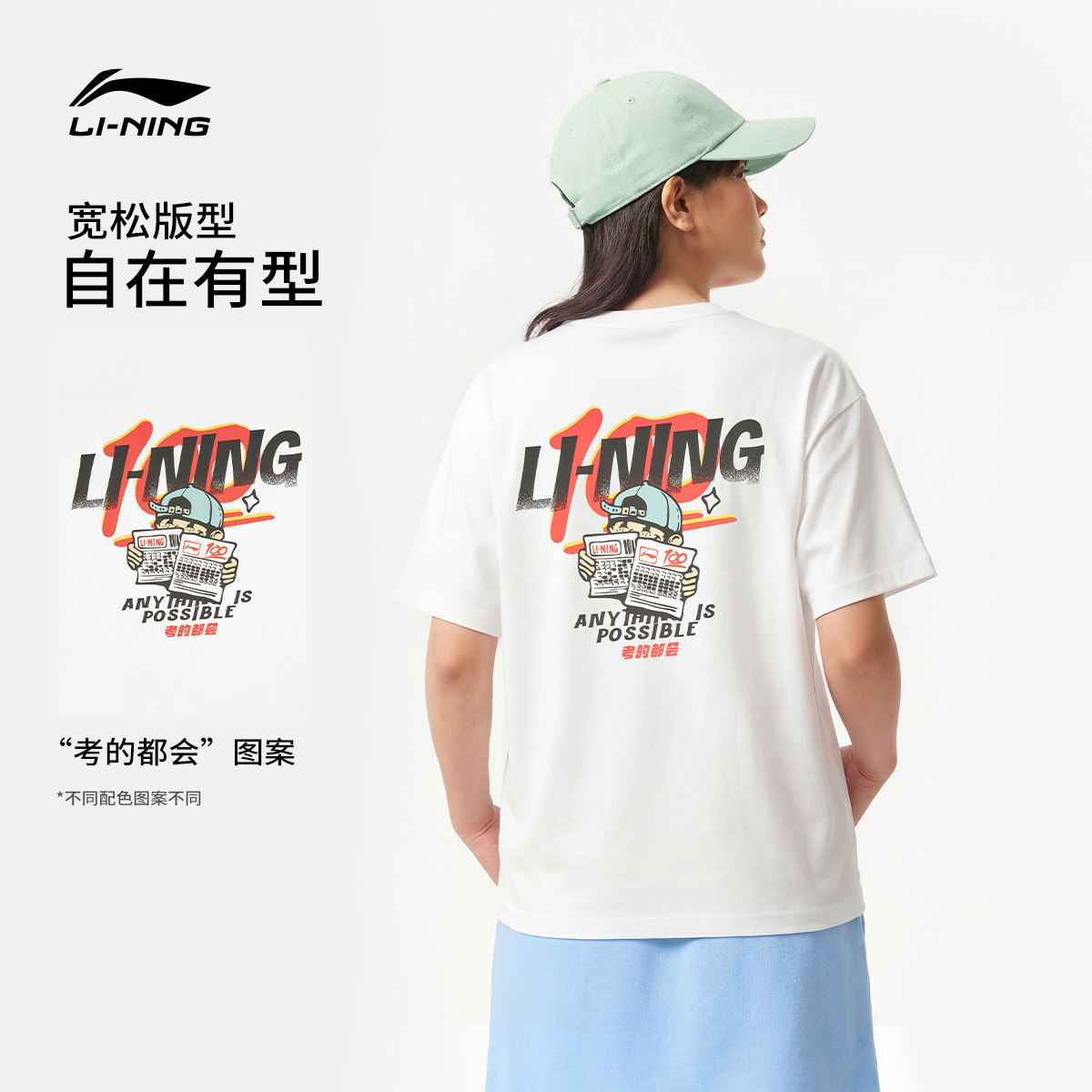 李宁考试T恤女春夏2026新款情侣透气上衣圆领印花冰丝运动短袖男