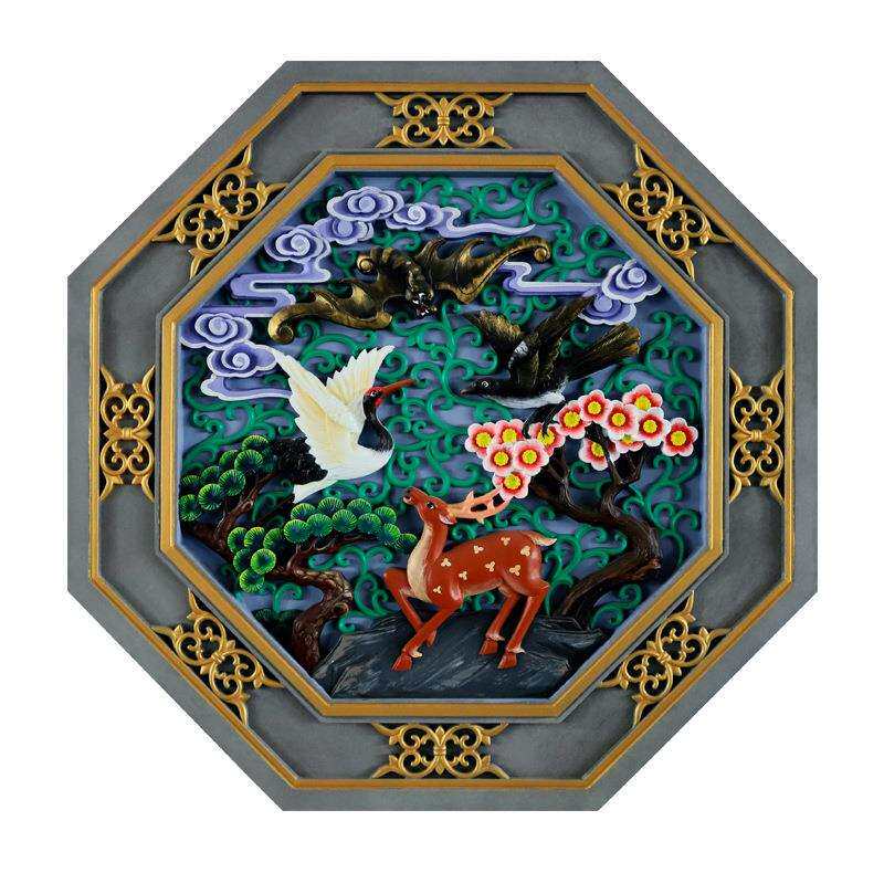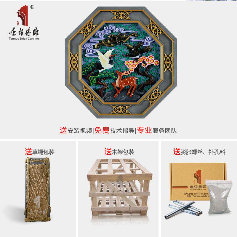 唐语砖雕仿古砖青砖影壁墙照壁浮雕壁芯装饰画八边形彩绘福禄寿喜
