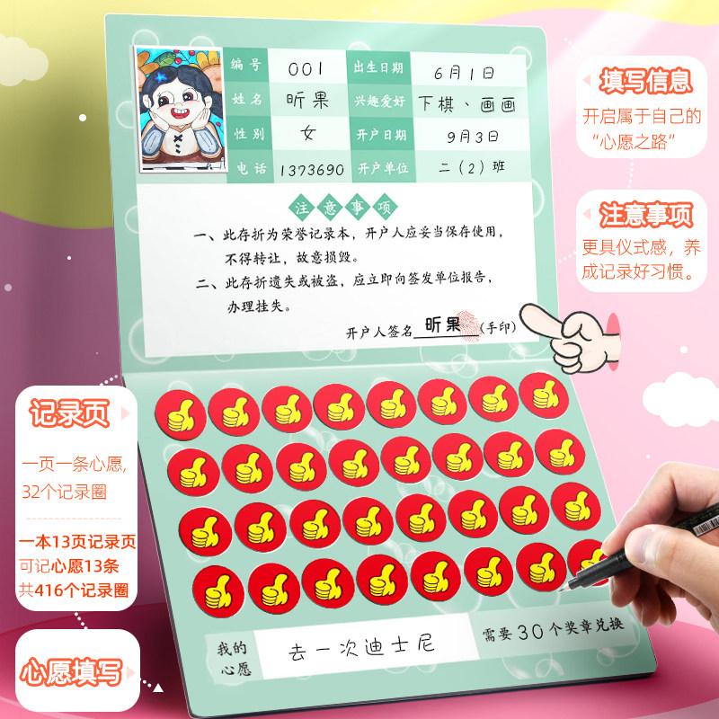 昕果心愿存折小学生积分卡印章盖章收集本儿童幼儿园贴纸孩子奖励学习记录卡可爱集赞本集星星小红花家用打卡