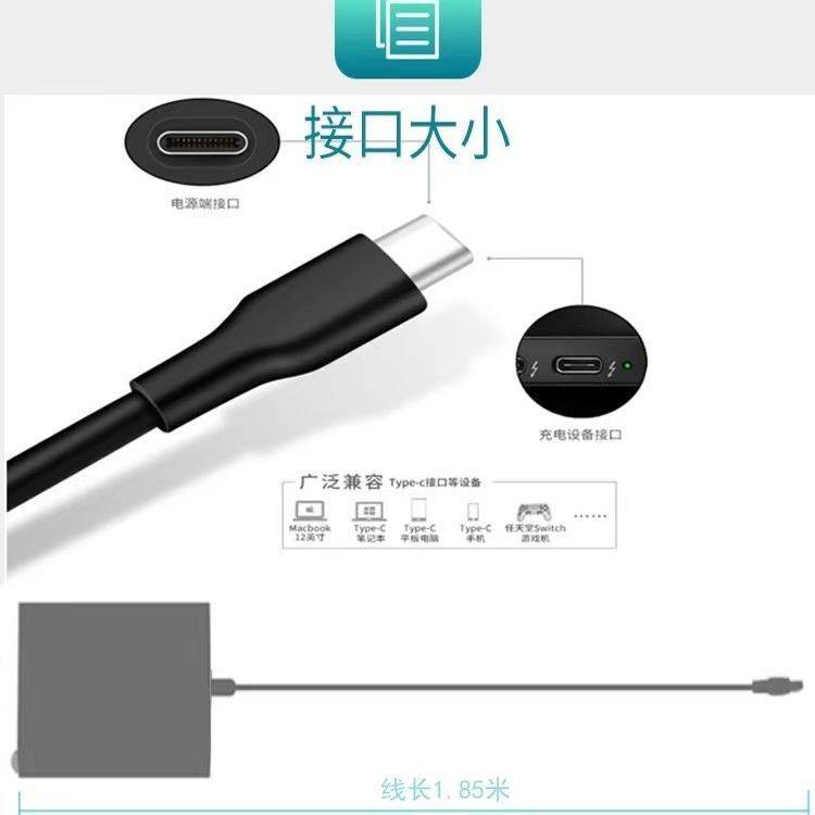 适用于小米华为笔记本电脑白色便携款充电器65W100Wtype-c PD快充