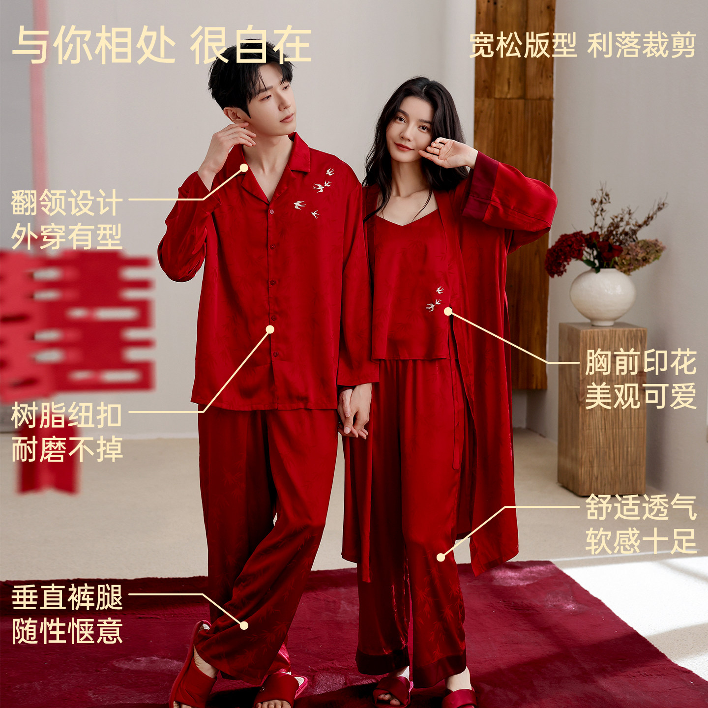 红色睡衣情侣冰丝长袖结婚新婚礼物2026新款马年本命年家居服套装