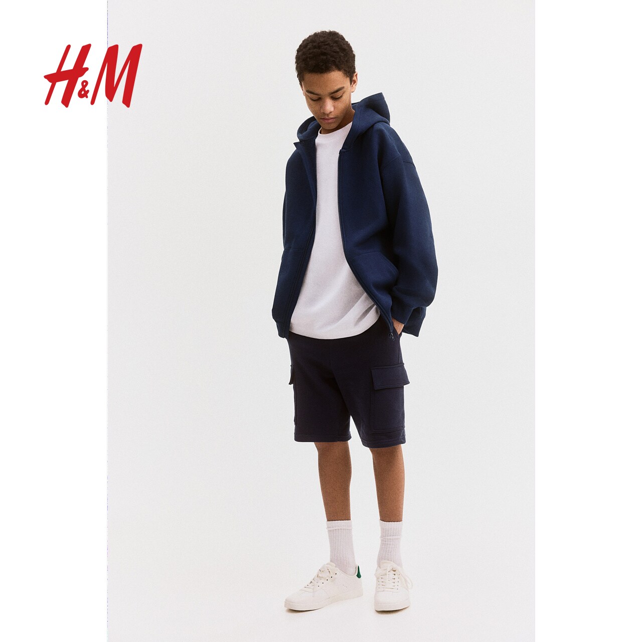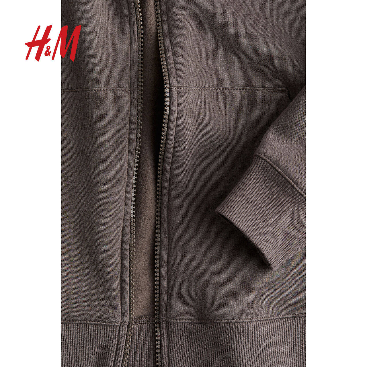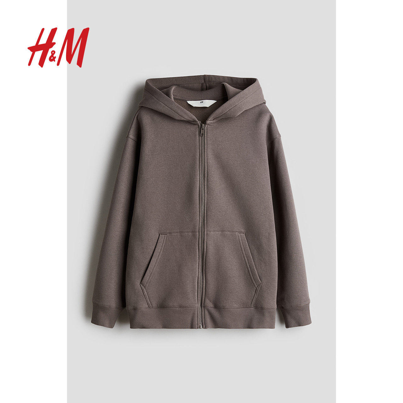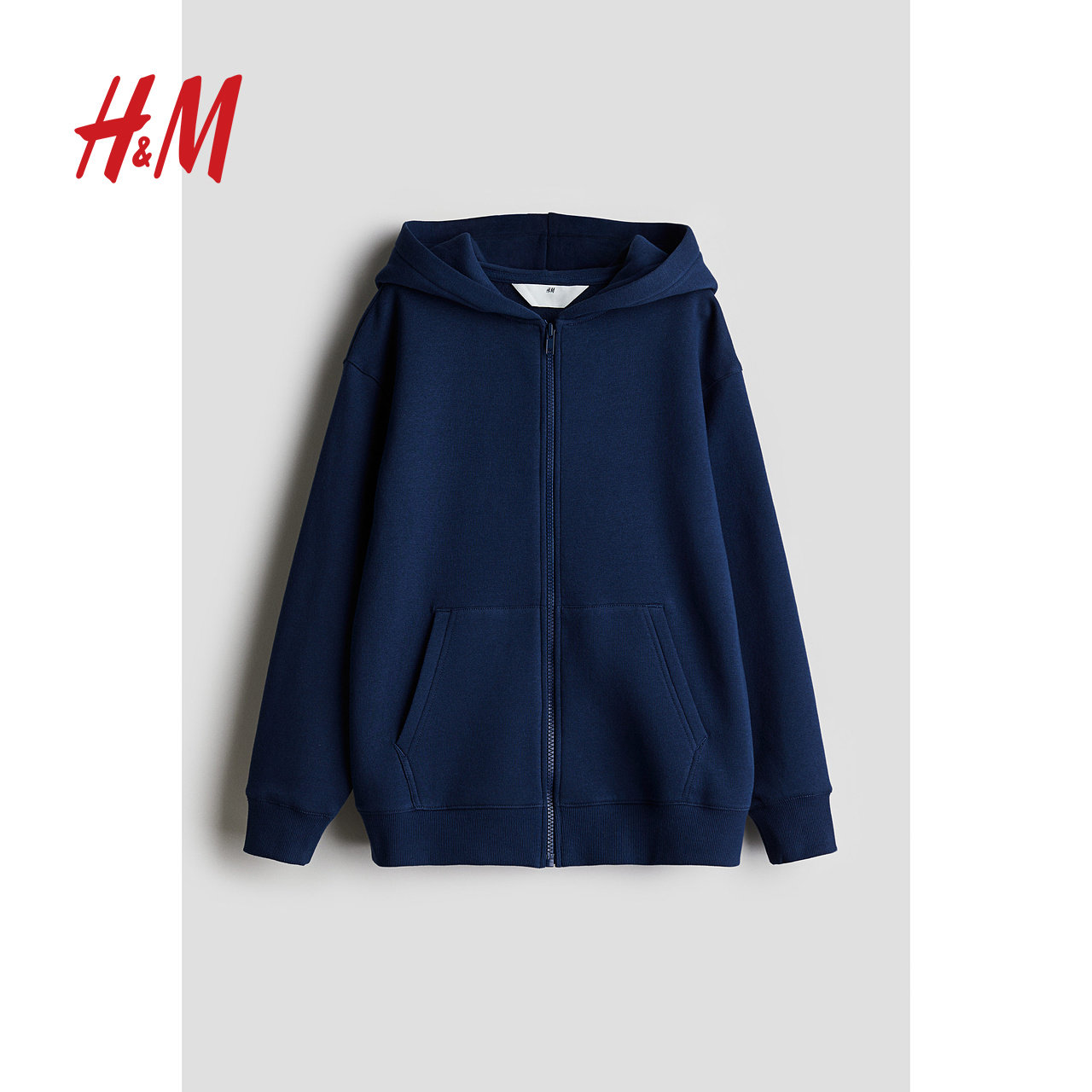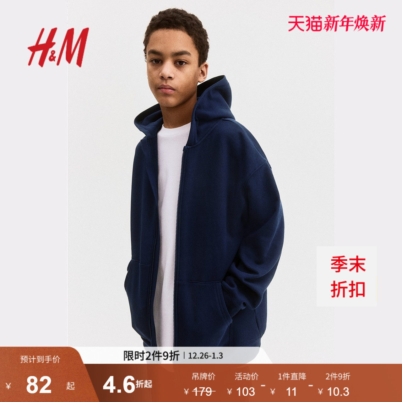 HM童装儿童男童卫衣冬季全宽松前襟设计绒衫拉链连帽衫1231469