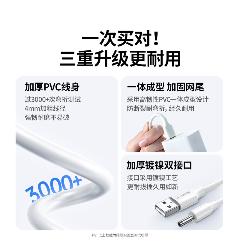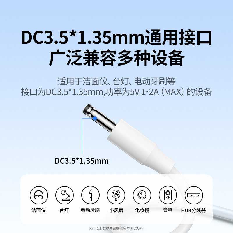 绿联圆孔充电线圆头usb转dc3.5mm通用台灯玩具电源5V电动牙刷小夜音响适用于foreo露娜洁面luna洗脸仪mini2